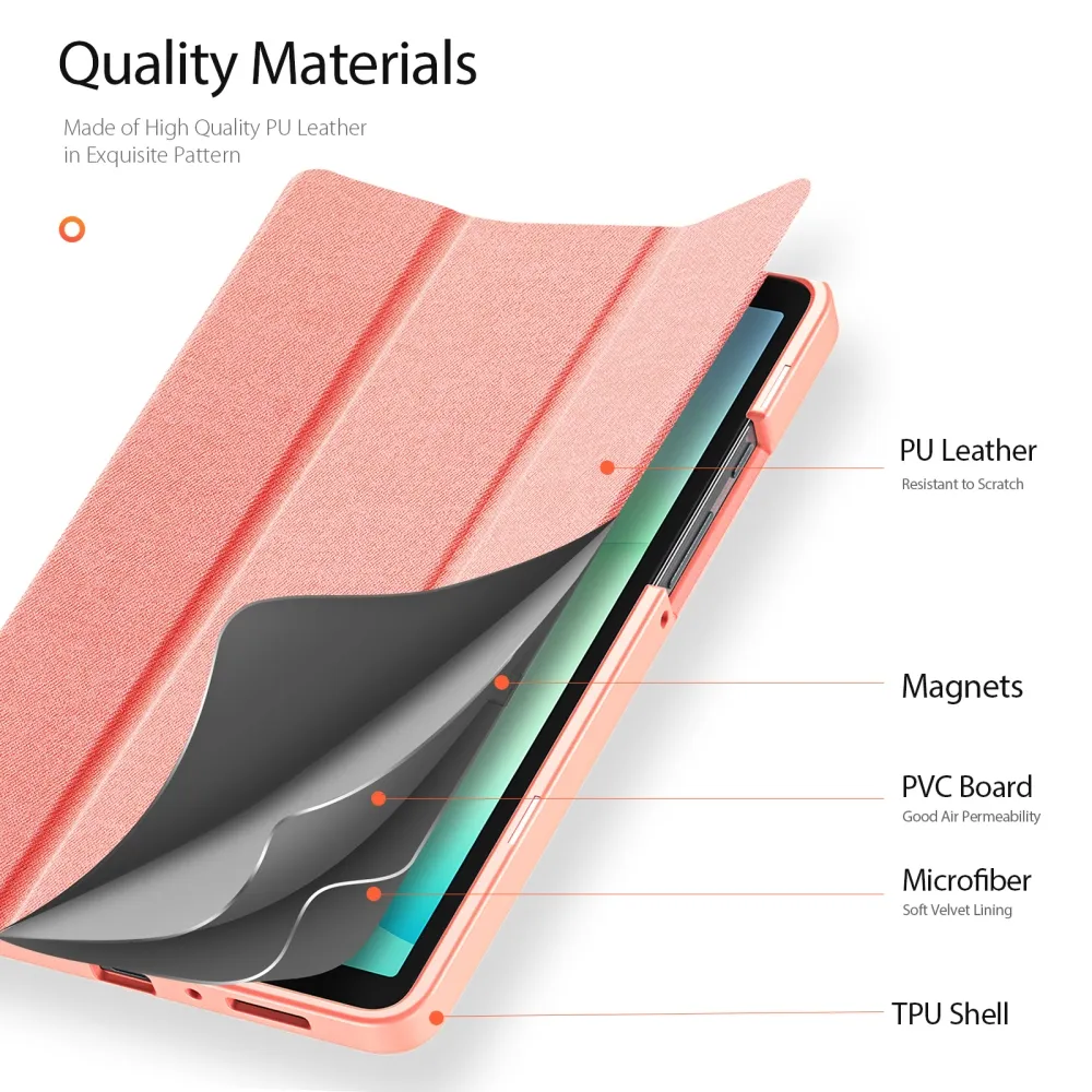 Praktický a elegantný zatvárateľný obal DUX na tablet Samsung Galaxy Tab A11/Tab A9 v ružovom prevedení je ideálnym riešením pre ochranu aj pohodlné používanie vášho zariadenia. Kryt je vyrobený z odolného materiálu, ktorý zaisťuje účinnú ochranu proti poškriabaniu, nárazom aj bežnému opotrebovaniu. Predná časť je rozdelená do troch segmentov, čo umožňuje jednoduché zloženie do praktického stojanu na sledovanie videí alebo prácu. Vnútorná strana krytu pevne drží tablet na mieste bez toho, aby obmedzovala prístup k ovládacím prvkom. Toto štýlové púzdro DUX na tablet skvele kombinuje funkčnosť, bezpečie a moderný vzhľad.