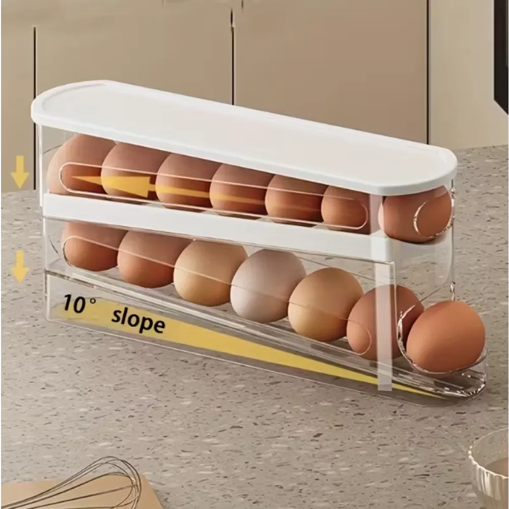Praktický dvojposchodový zásobník na vajíčka pomôže udržať chladničku prehľadne usporiadanú a zároveň ochráni vajíčka pred poškodením. Vďaka premyslenému systému sa vajíčka po odobratí automaticky posunú dopredu, takže sú vždy ľahko dostupné. Integrovaný dispenser na jednoduché a bezpečné vydávanie vajíčok minimalizuje riziko pádu alebo rozbitia. Kompaktné prevedenie z odolného plastu šetrí miesto a umožňuje efektívne využitie priestoru v chladničke.