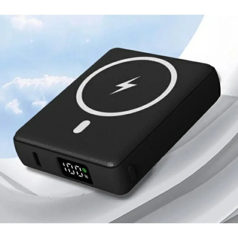 E42A magnetická čierna powerbanka 10000 mAh s bezdrôtovým nabíjaním a koženým povrchom je štýlové a praktické riešenie na nabíjanie na cestách. Vďaka magnetickému uchyteniu pevne drží na telefóne a umožňuje pohodlné bezdrôtové nabíjanie bez káblov.