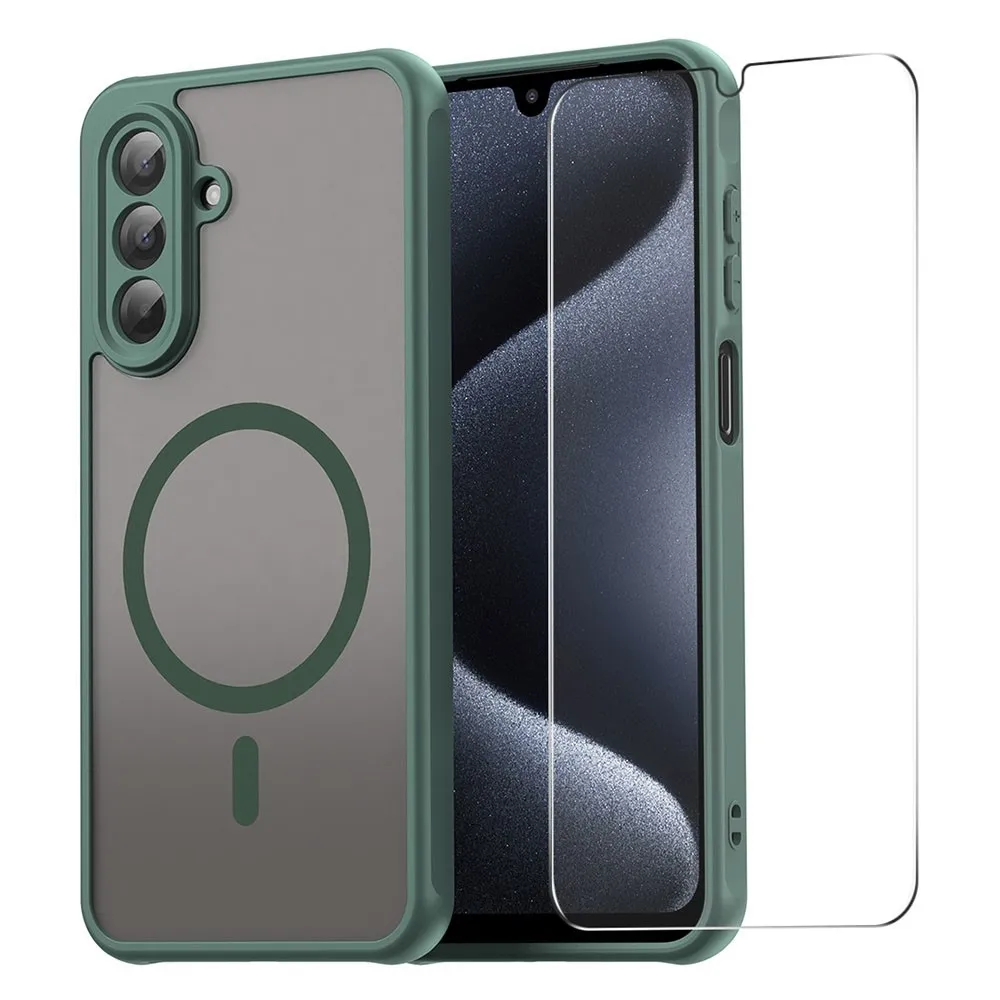 ENKAY matný gélový obal s MagSafe + 9H ochranné sklo na Samsung Galaxy A16 4G/5G - zelený