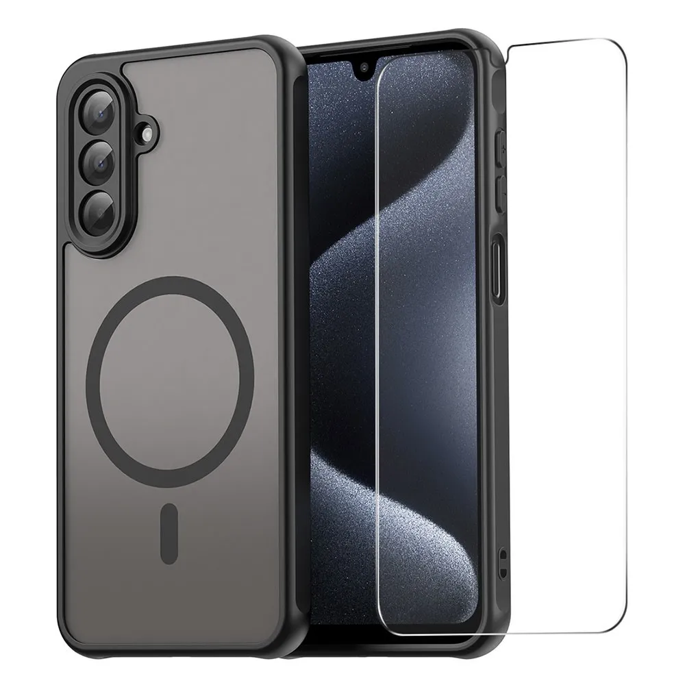 ENKAY matný gélový obal s MagSafe + 9H ochranné sklo na Samsung Galaxy A17 4G/5G - čierny