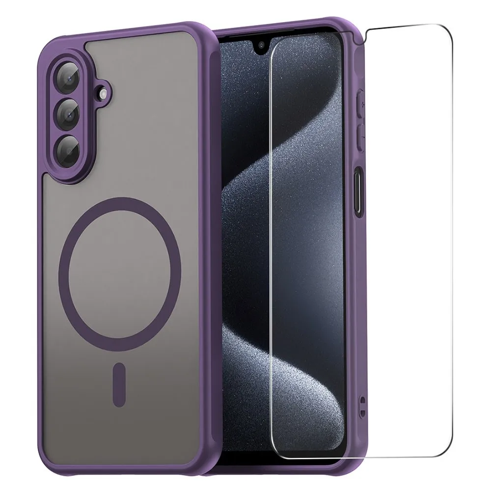 Fialový matný gélový kryt ENKAY s MagSafe a tvrdené ochranné sklo 9H na mobil Samsung Galaxy A26 5G
