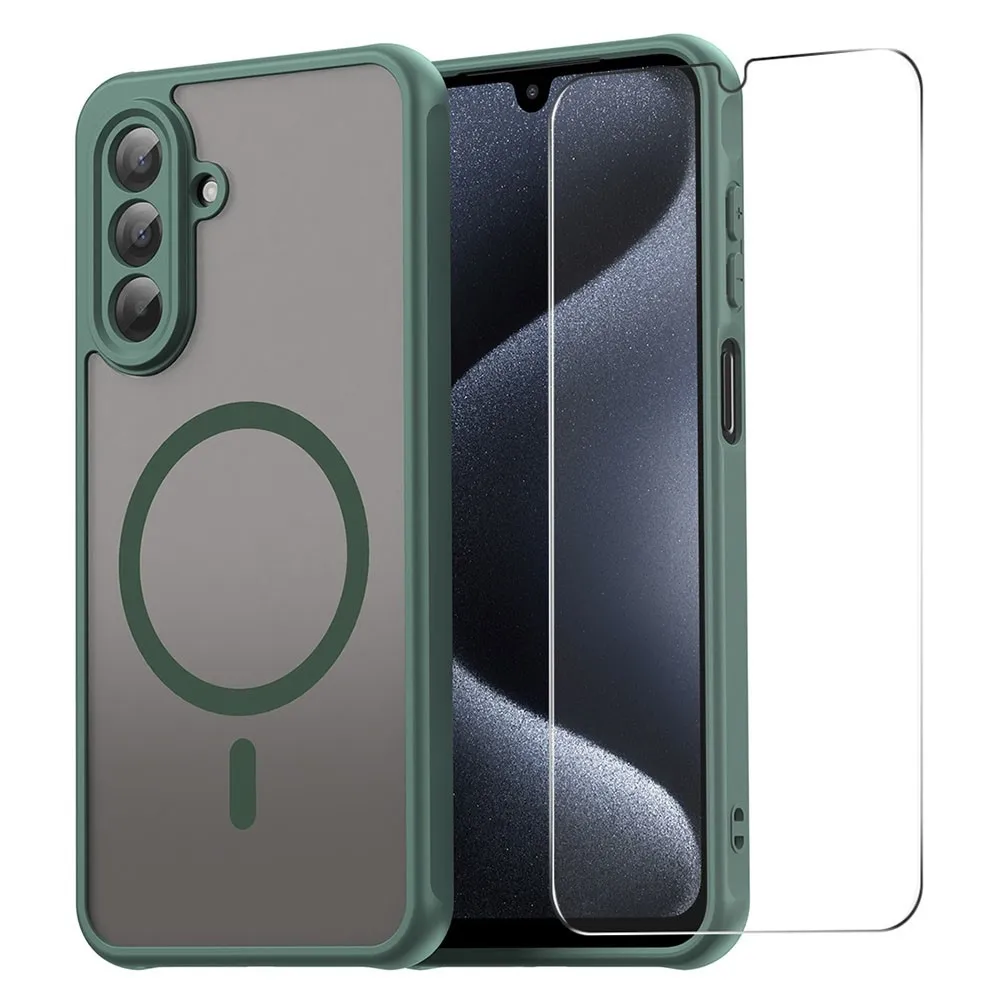 ENKAY matný gélový obal s MagSafe + 9H ochranné sklo na Samsung Galaxy A26 5G - zelený