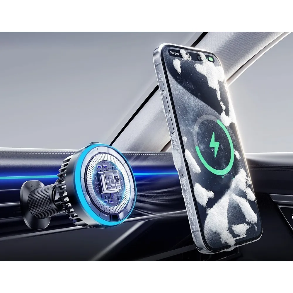 Essager magnetická bezdrôtová nabíjačka do auta 15W s chladením a 360° rotáciou je moderné riešenie pre pohodlné nabíjanie telefónu počas jazdy. Vďaka silnému magnetickému uchyteniu drží telefón pevne na mieste a umožňuje jednoduché prichytenie aj odobratie jednou rukou.