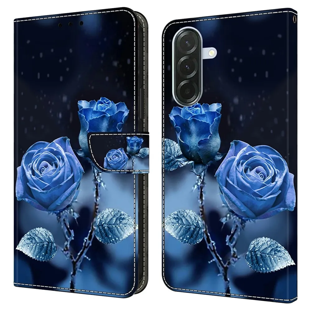 ✅【Kvalitný materiál】 Puzdro Fashion a motív modré ruže na mobil Samsung Galaxy A37 5G je vyrobené z umelej kože v kombinácii s TPU s výrazným vzorom