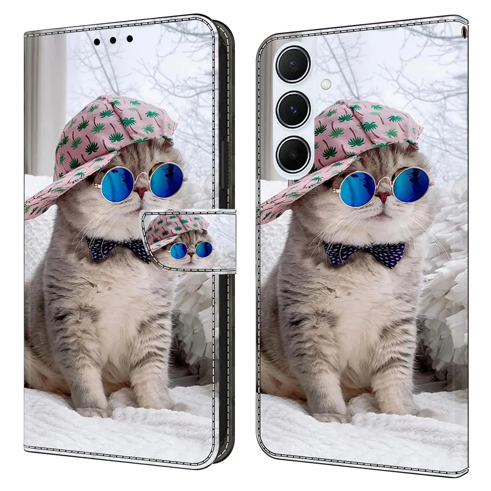 Peňaženkové puzdro Fashion s motívom mačka v šiltovke na mobil Samsung Galaxy A56 5G