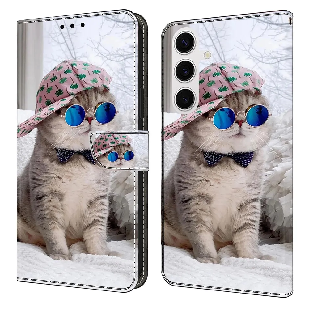Peňaženkové puzdro Fashion s motívom mačka v šiltovke na mobil Samsung Galaxy S26/S26 Pro