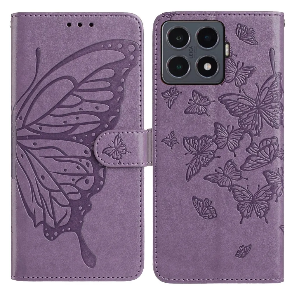 Fialové peňaženkové puzdro Floral Butterfly na mobil Xiaomi 15T Pro