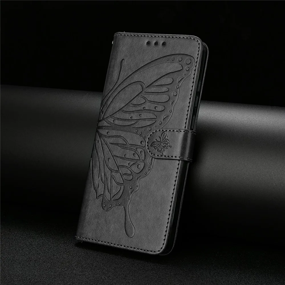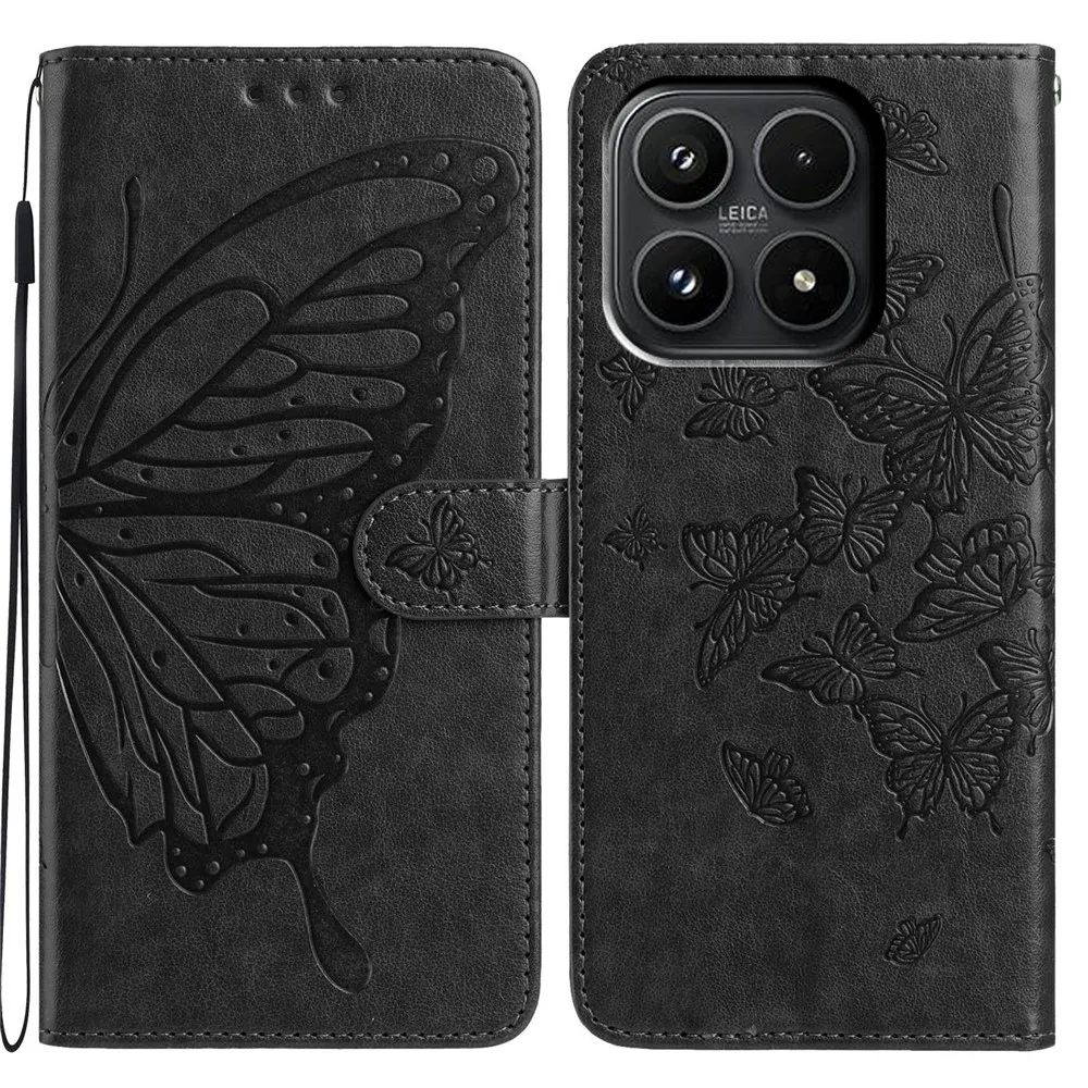 Čierne peňaženkové puzdro Floral Butterfly na mobil Xiaomi 17