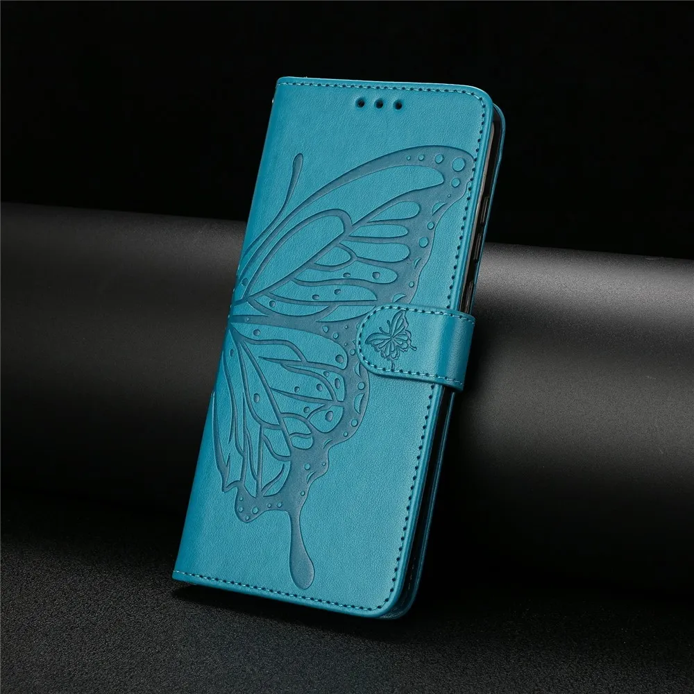 Modré peňaženkové puzdro Floral Butterfly na mobil Xiaomi 17