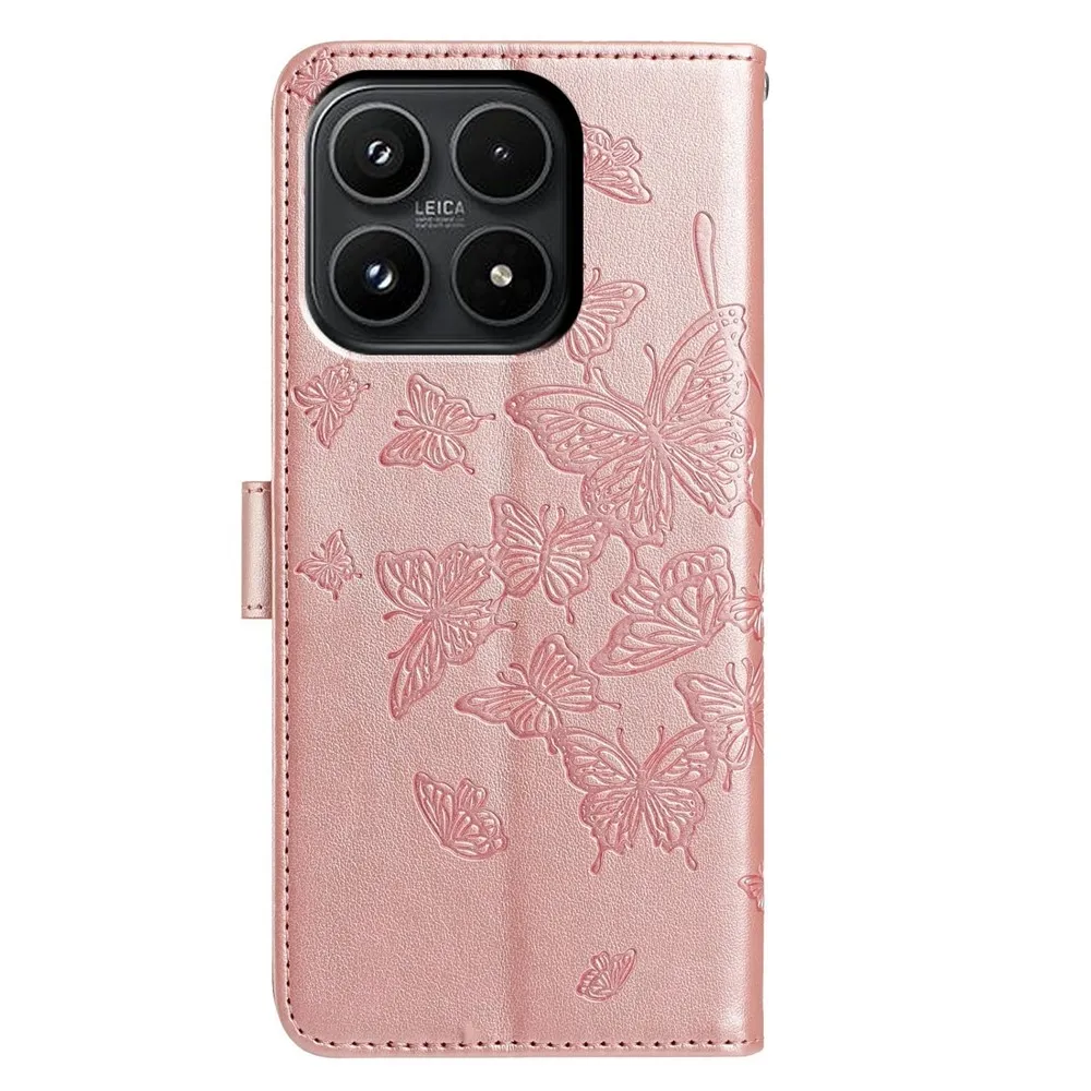 Ružovozlaté peňaženkové puzdro Floral Butterfly na mobil Xiaomi 17