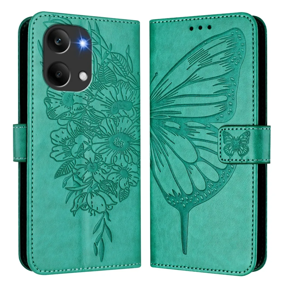 Floral Butterfly knižkové púzdro na Xiaomi Poco X8 Pro Max 5G - modrozelené