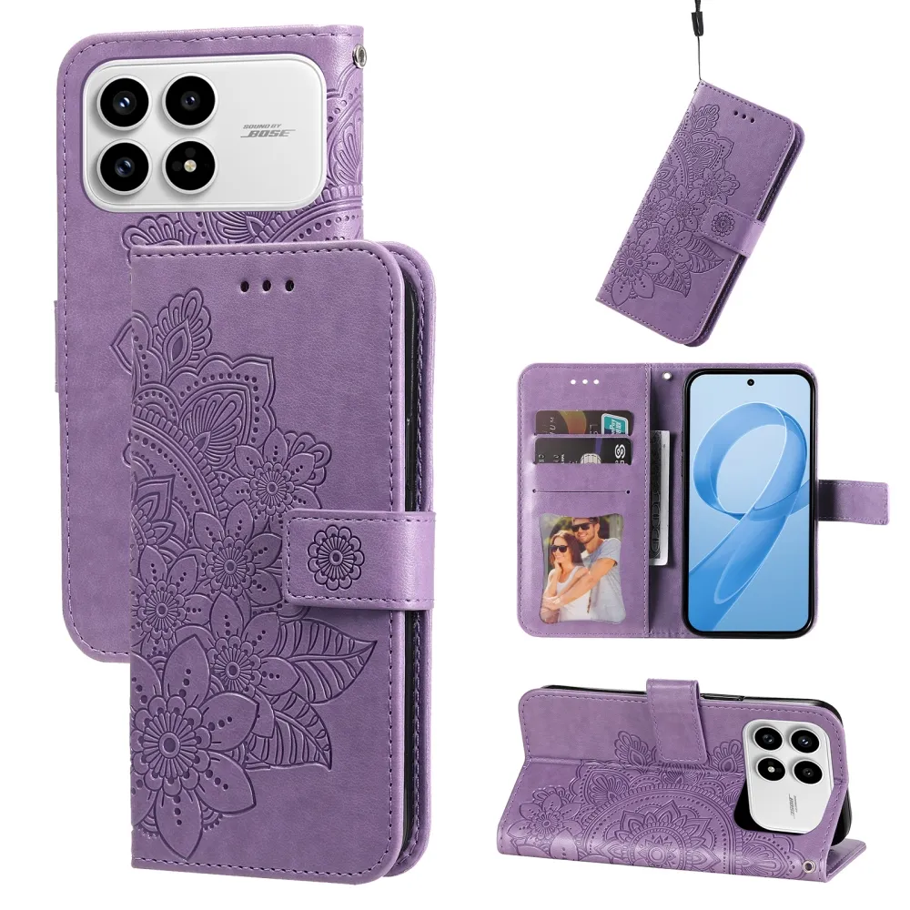 Fialové peňaženkové puzdro Floral na mobil Xiaomi Poco F8 Pro 5G