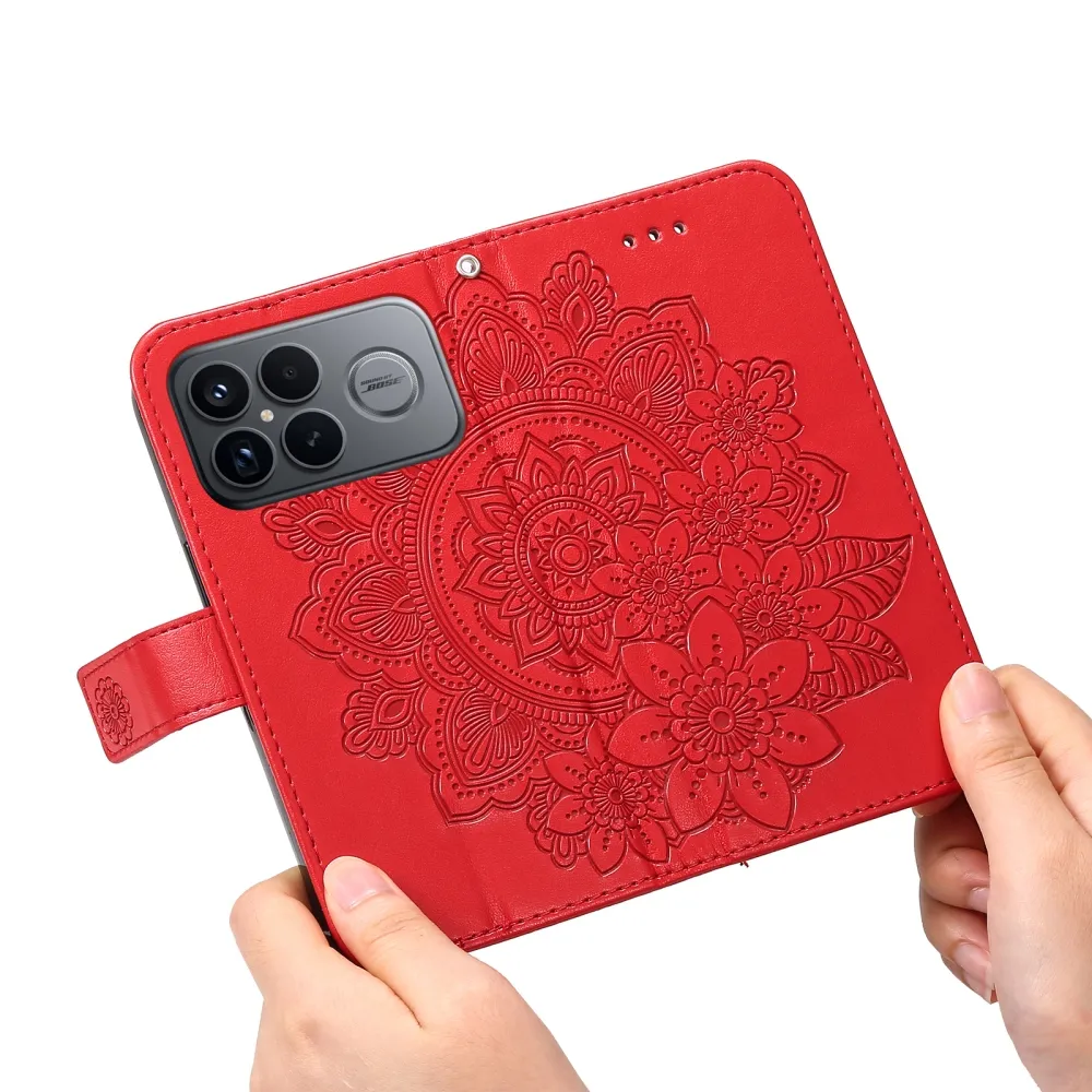 Floral knižkové púzdro na Xiaomi Poco F8 Ultra 5G - červené