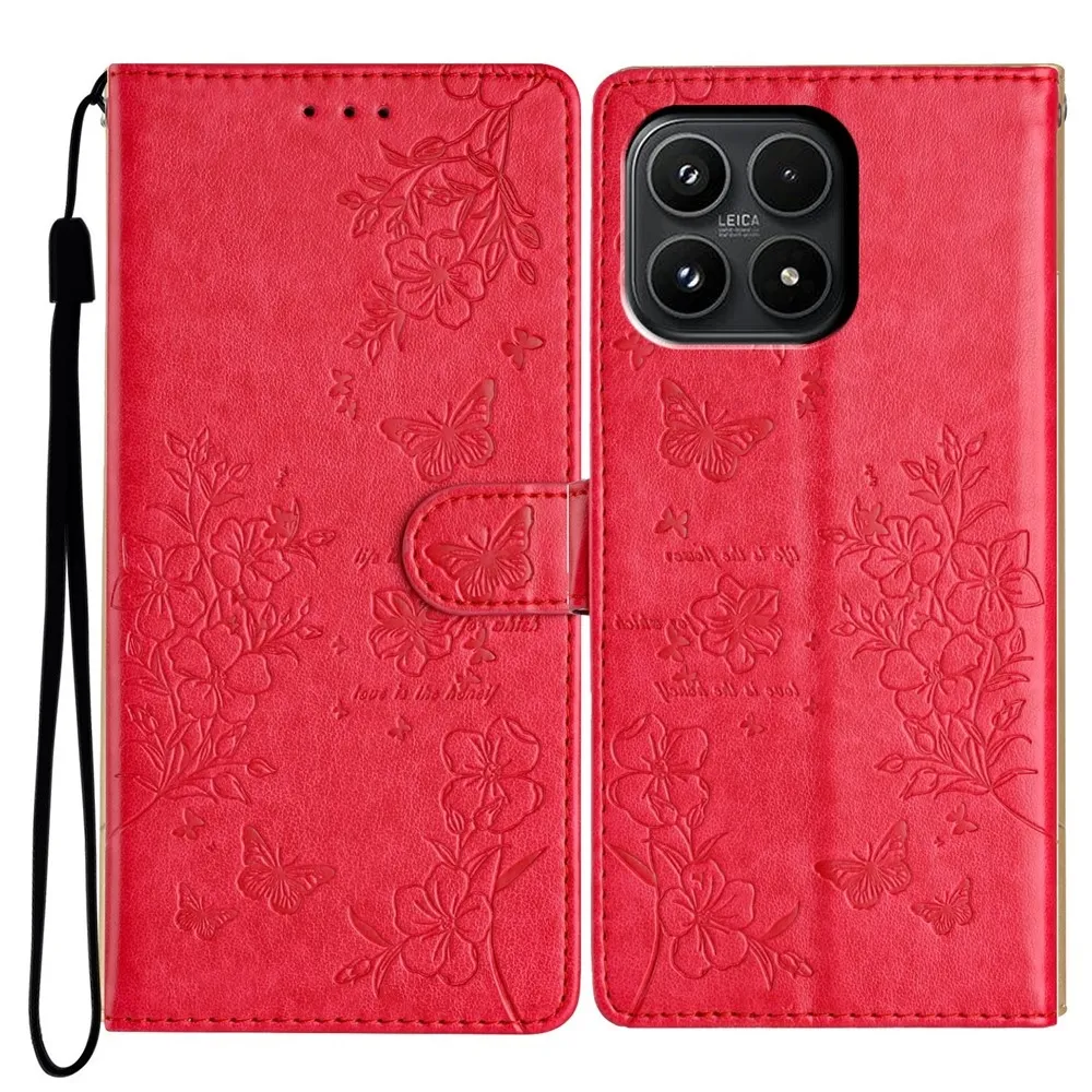 Červené peňaženkové puzdro Floralis na mobil Xiaomi 17