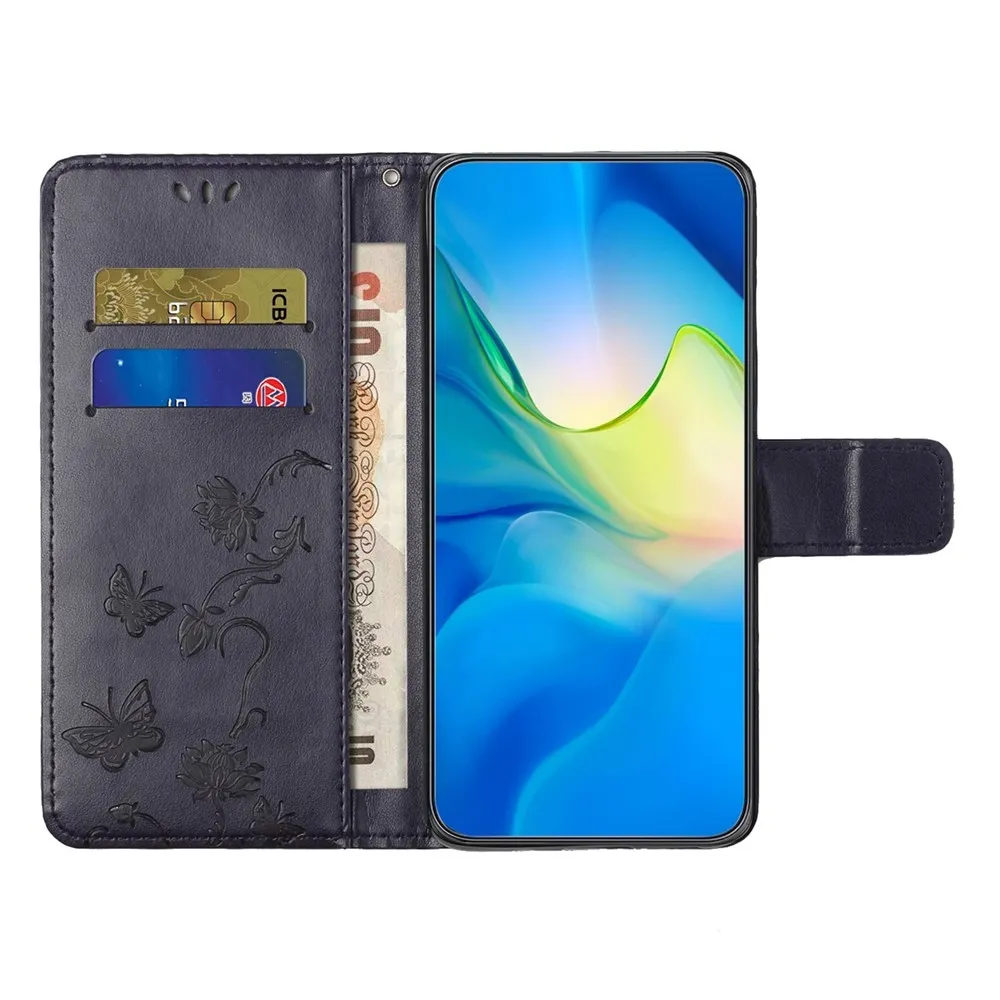 Tmavomodré peňaženkové puzdro Flower na mobil Honor 400 Pro