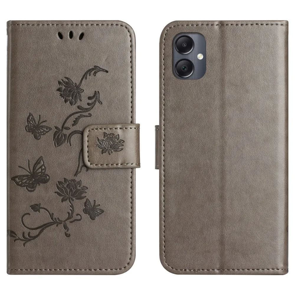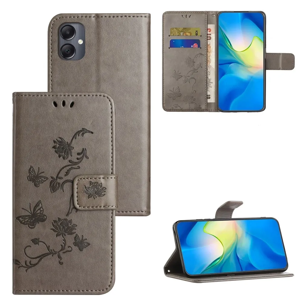 Šedé peňaženkové puzdro Flower na mobil Samsung Galaxy A07 4G