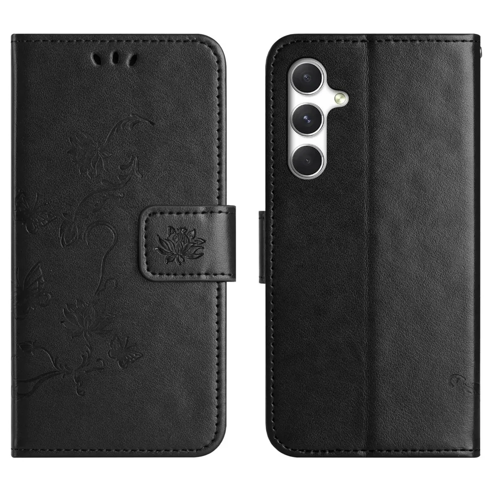 Čierne peňaženkové puzdro Flower na Samsung Galaxy S26+