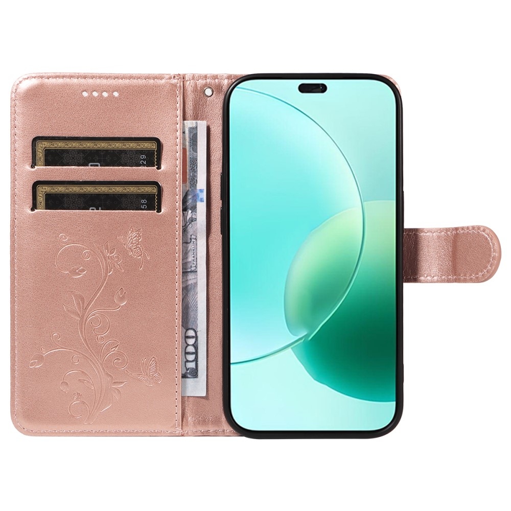 Ružovozlaté peňaženkové puzdro Flowers na mobil Honor 400 Lite