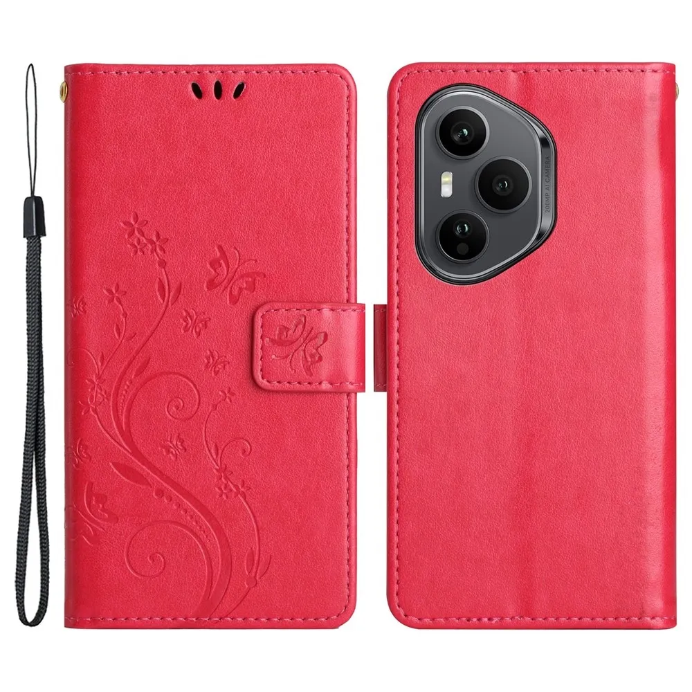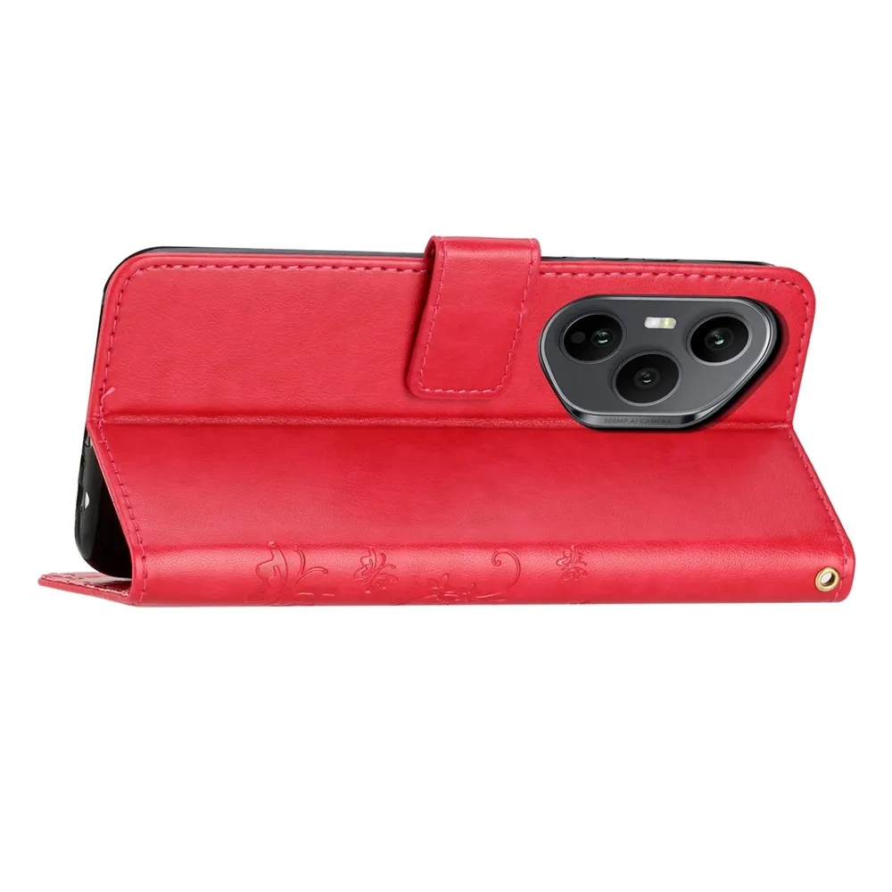 Červené peňaženkové puzdro Flowers na mobil Honor 400 Pro