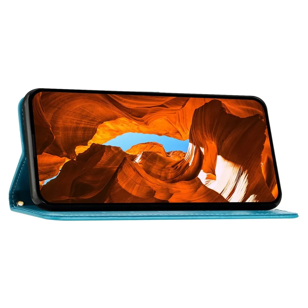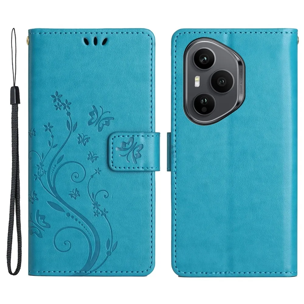 Modré peňaženkové puzdro Flowers na mobil Honor 400 Pro