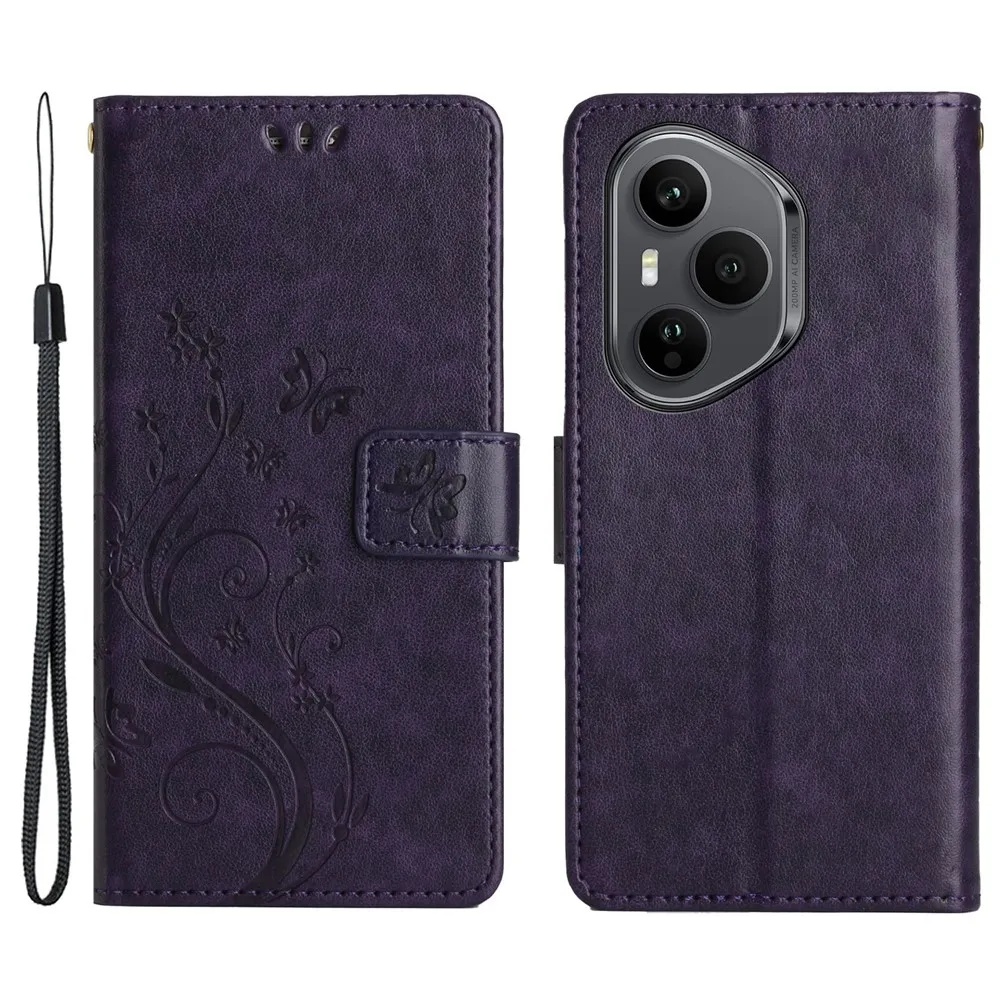 Tmavofialové peňaženkové puzdro Flowers na mobil Honor 400 Pro