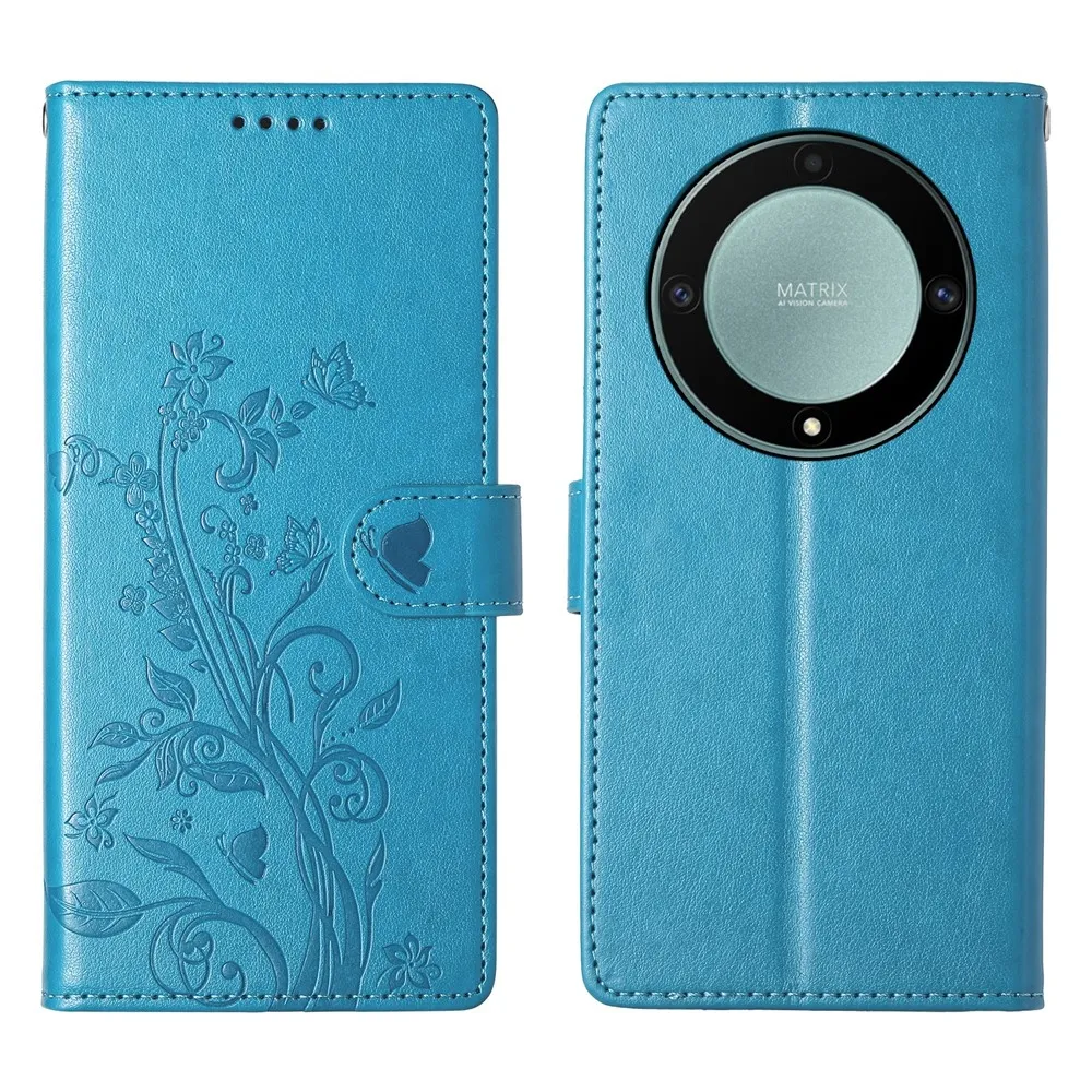 Flowers knižkové puzdro na Honor Magic 8 Lite 5G - modré