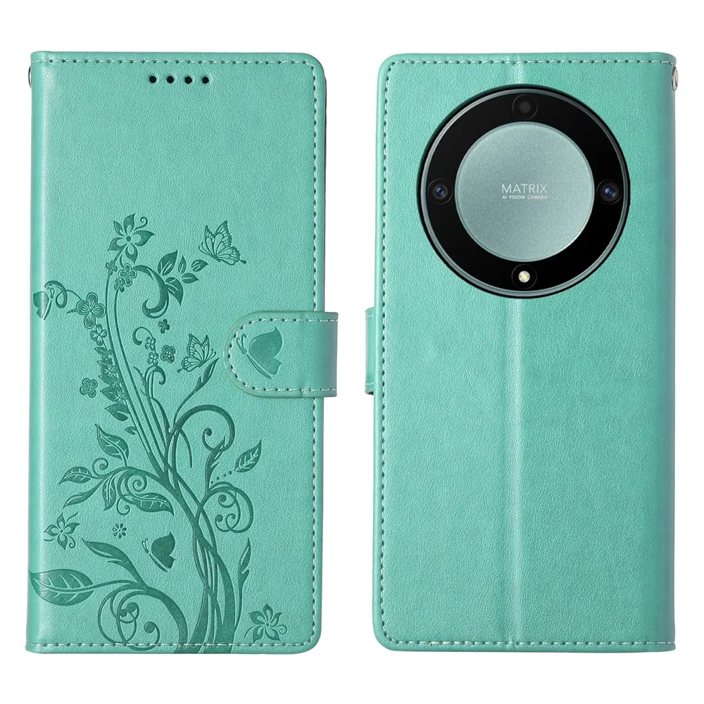 Flowers knižkové puzdro na Honor Magic 8 Lite 5G - modrozelené