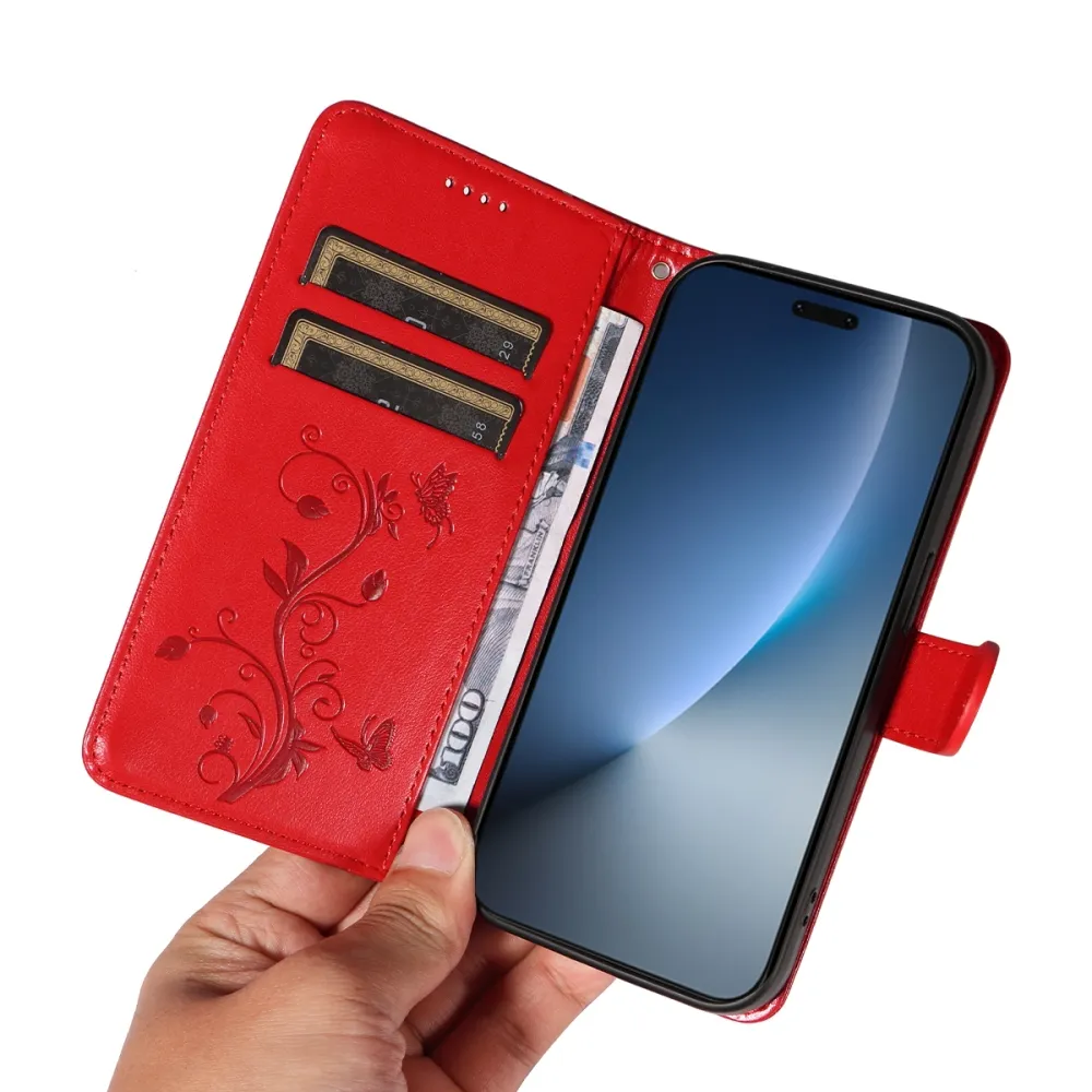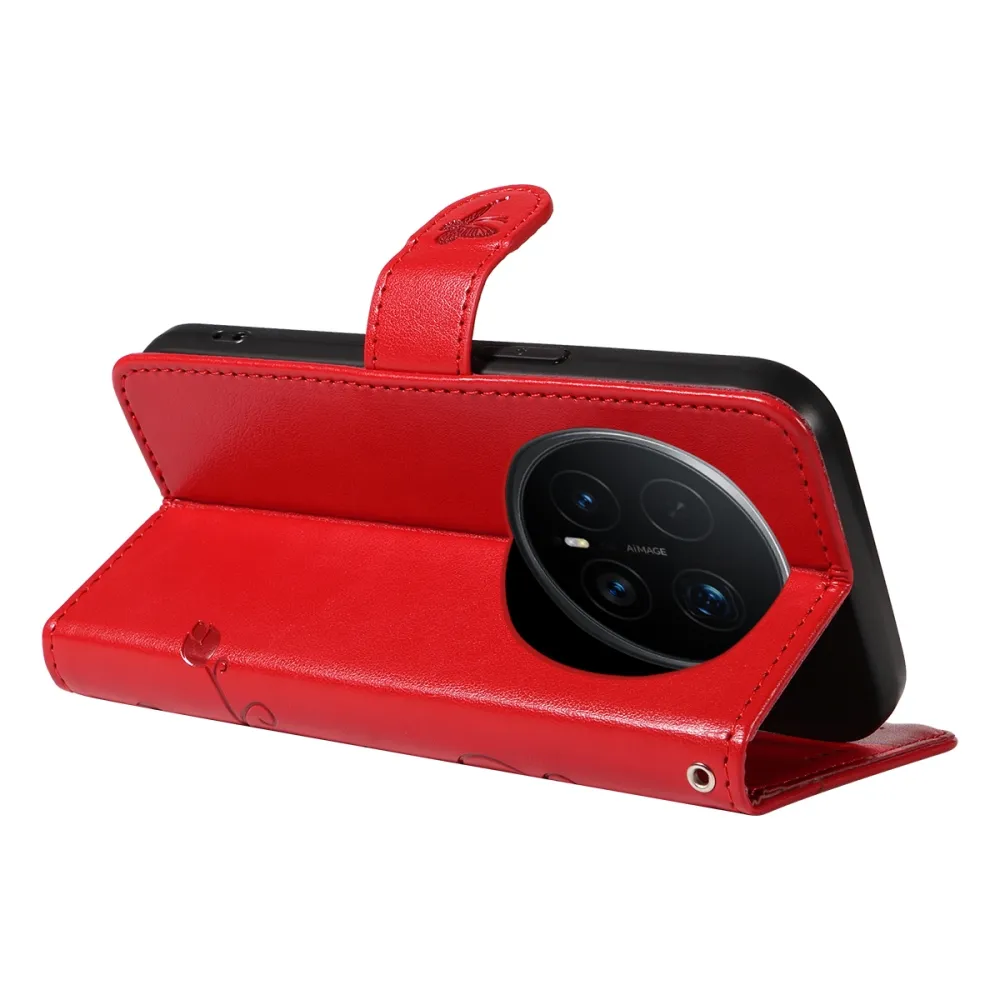 Červené peňaženkové puzdro Flowers na mobil Honor Magic 8 Pro 5G