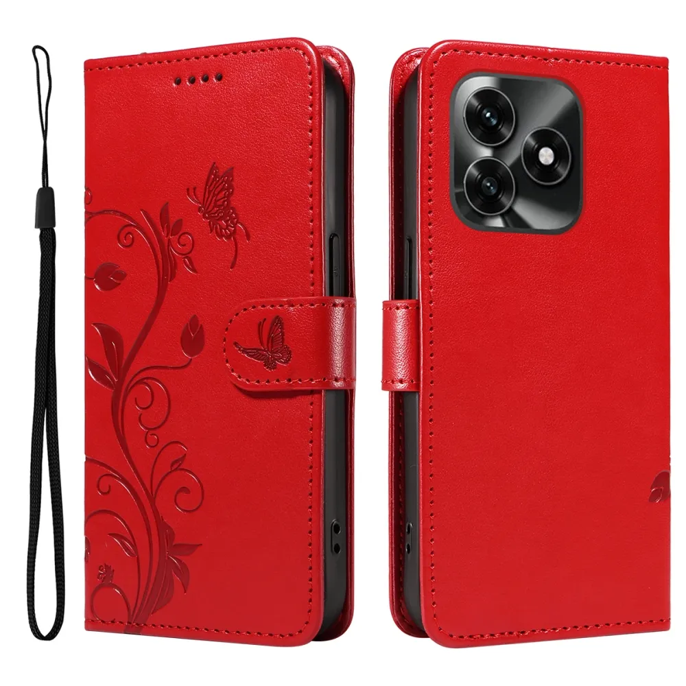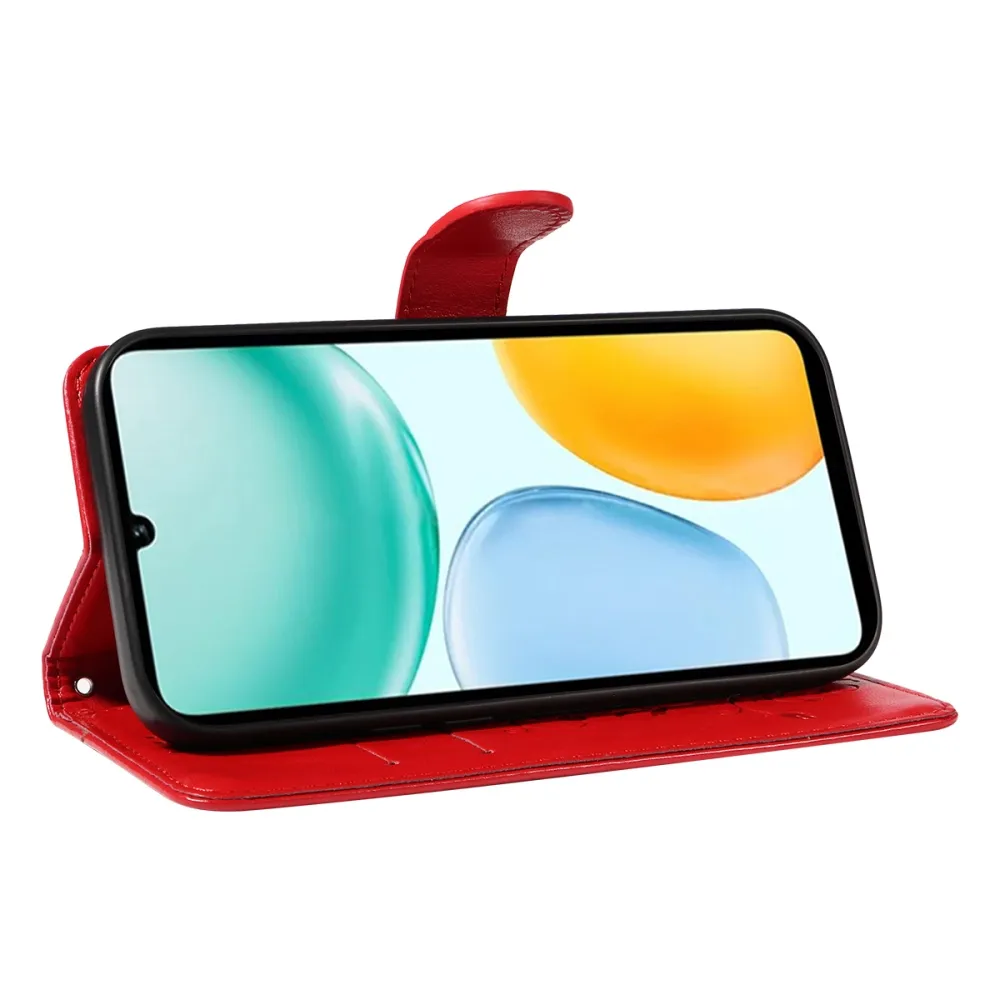 Červené peňaženkové puzdro Flowers na mobil Honor X5c Plus