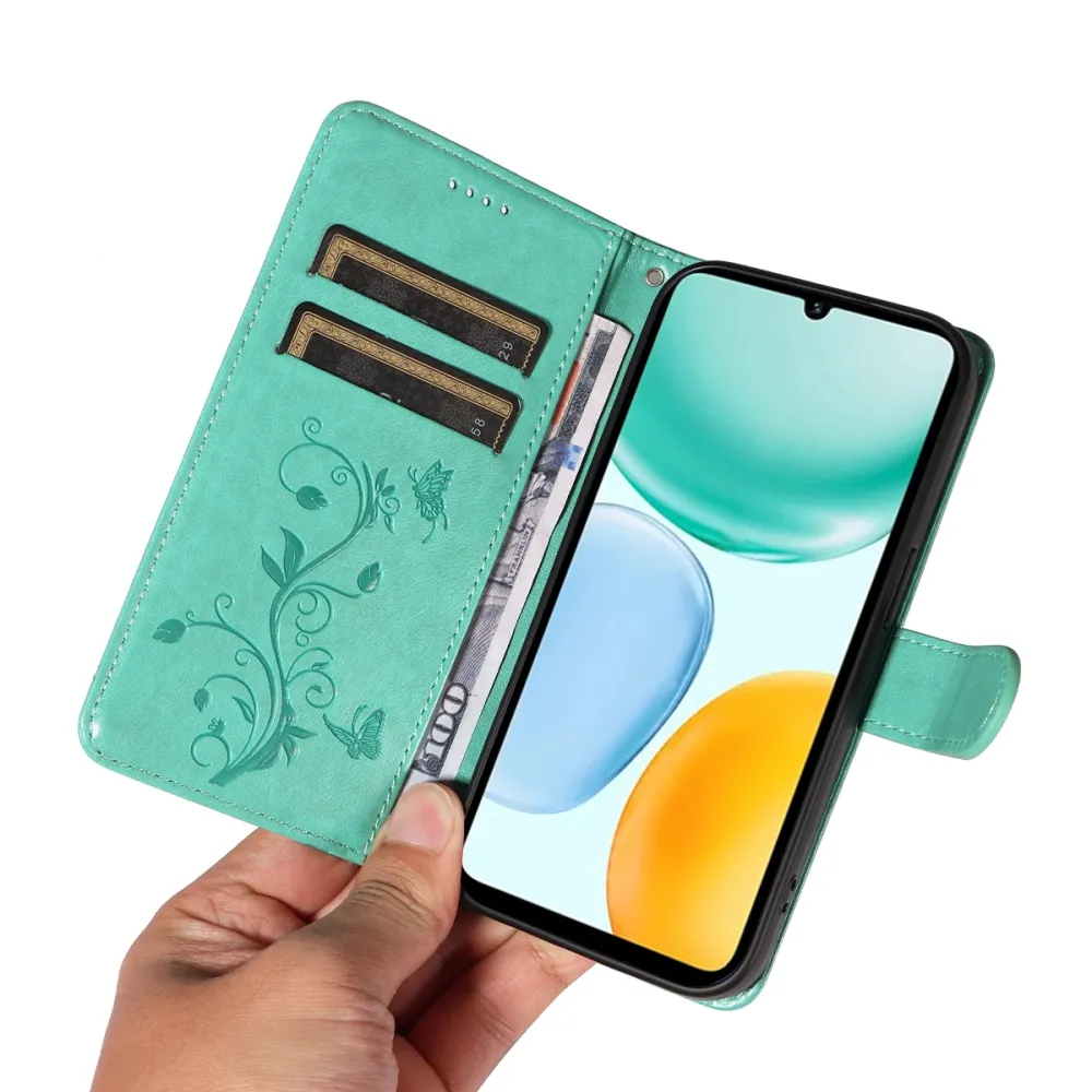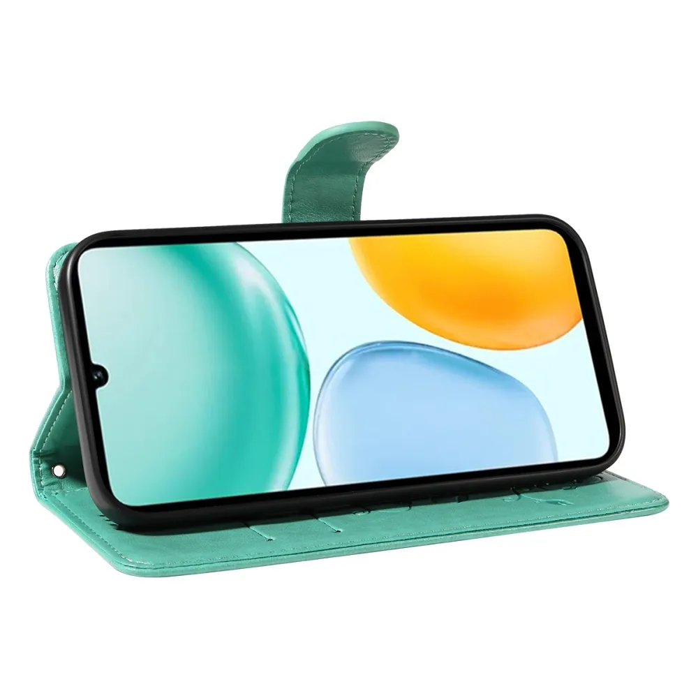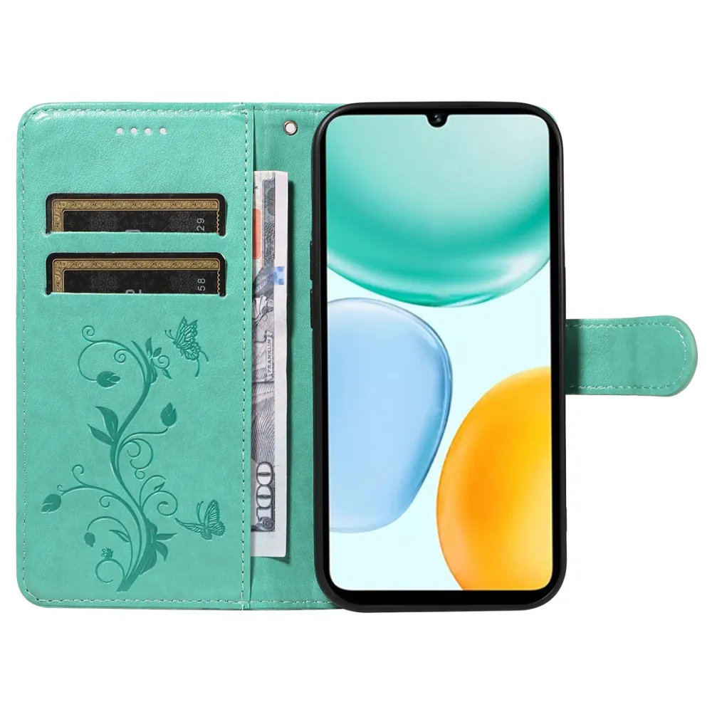 Modrozelené peňaženkové puzdro Flowers na mobil Honor X5c Plus