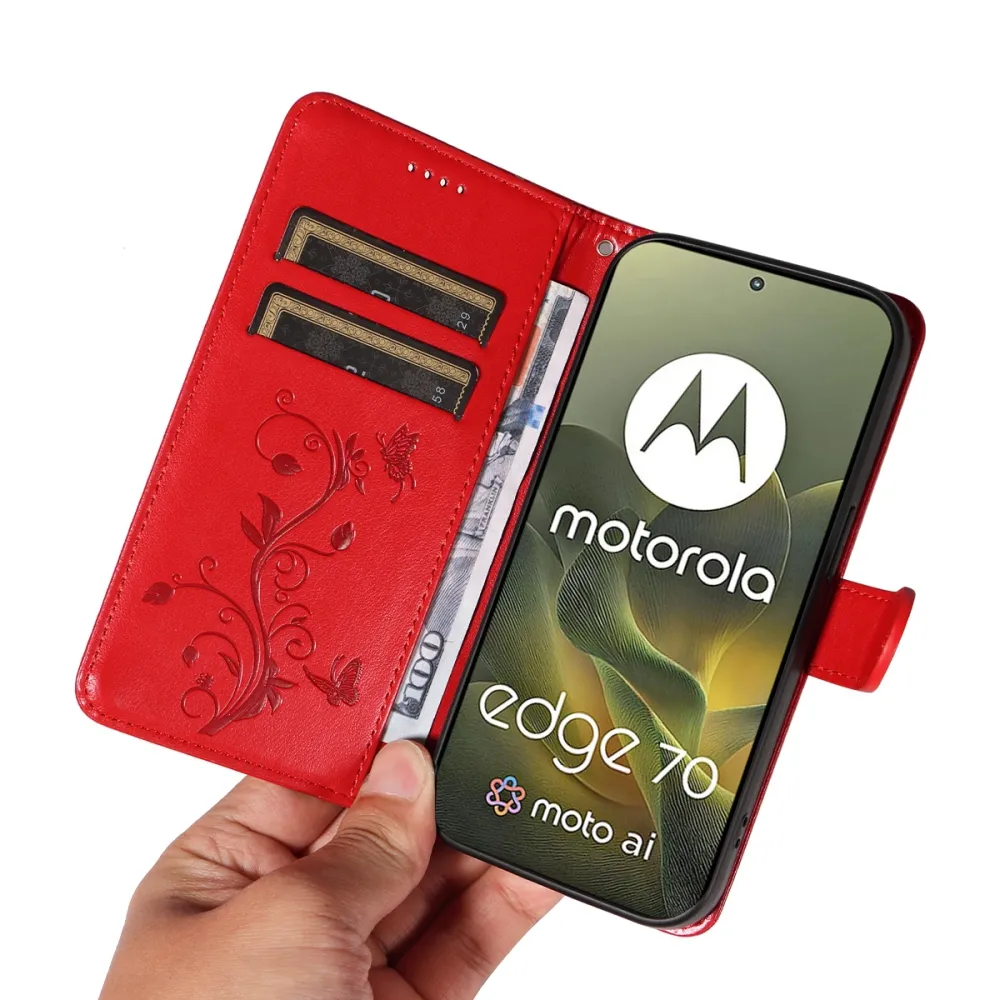 Flowers knižkové púzdro na Motorola Edge 70 5G - červené