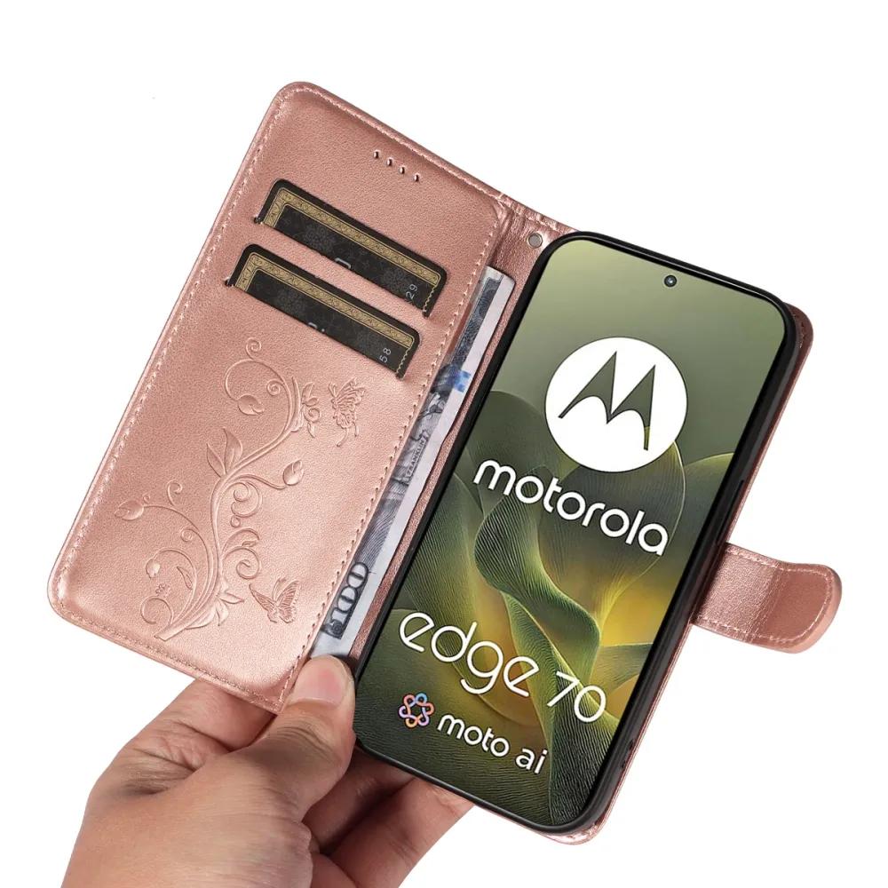 Flowers knižkové púzdro na Motorola Edge 70 5G - ružovozlaté