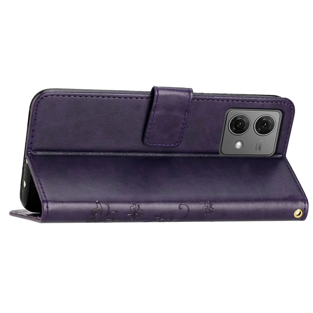 Tmavofialové peňaženkové puzdro Flowers na mobil Motorola Moto G85 5G