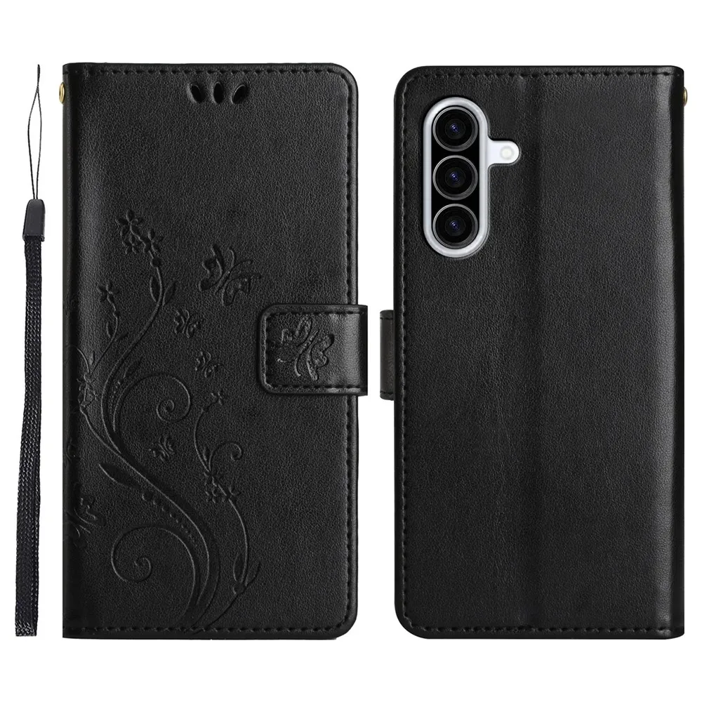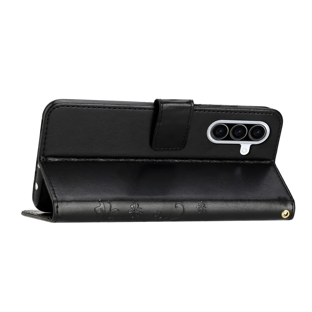 Čierne peňaženkové puzdro Flowers na mobil Samsung Galaxy A57 5G