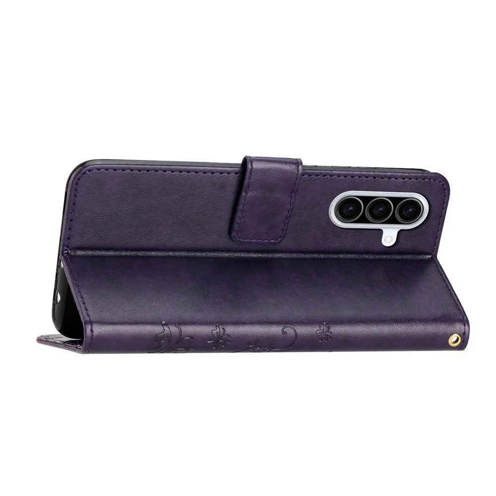 Tmavofialové peňaženkové puzdro Flowers na mobil Samsung Galaxy A57 5G