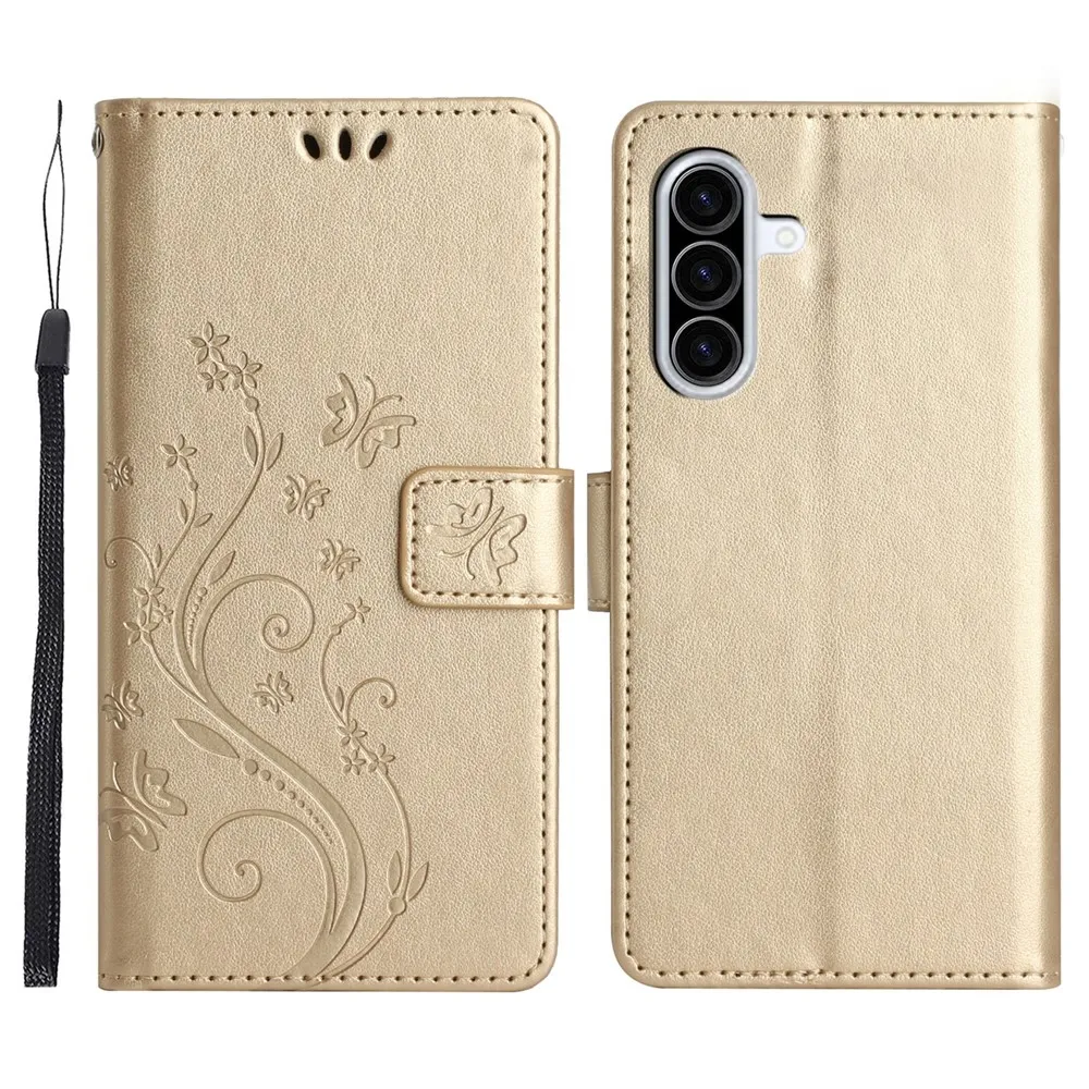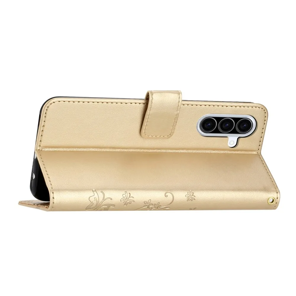 Zlaté peňaženkové puzdro Flowers na mobil Samsung Galaxy A57 5G