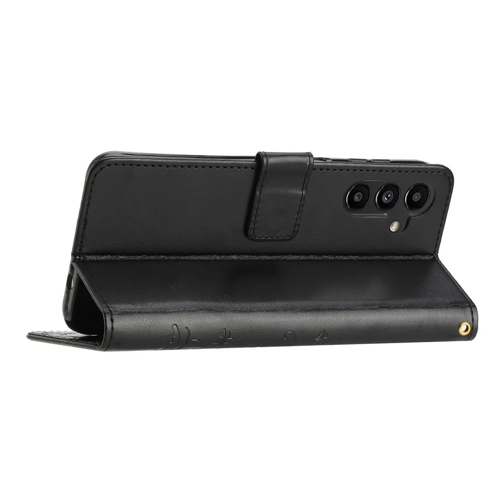 Čierne peňaženkové puzdro Flowers na Samsung Galaxy S26+