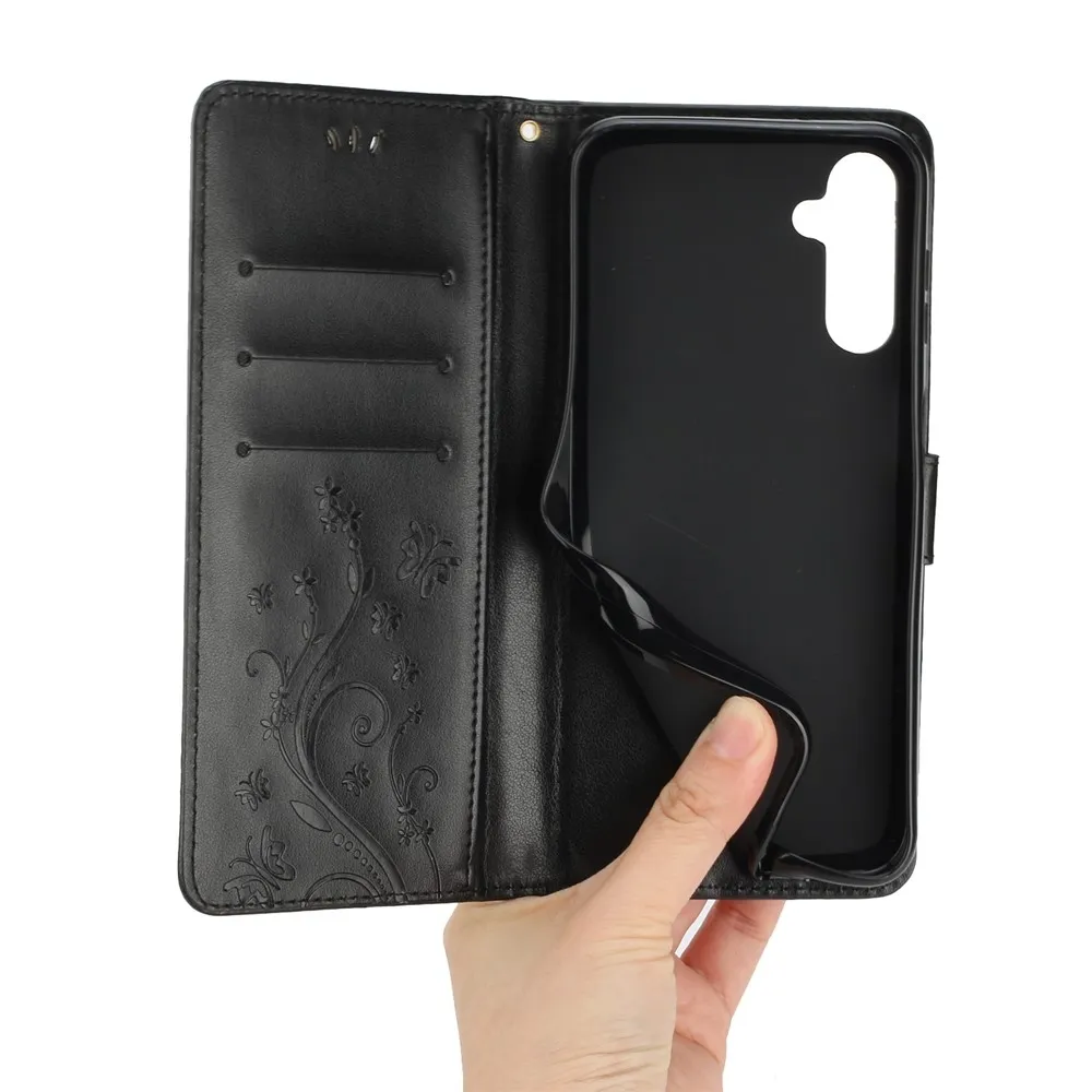 Čierne peňaženkové puzdro Flowers na Samsung Galaxy S26/S26 Pro