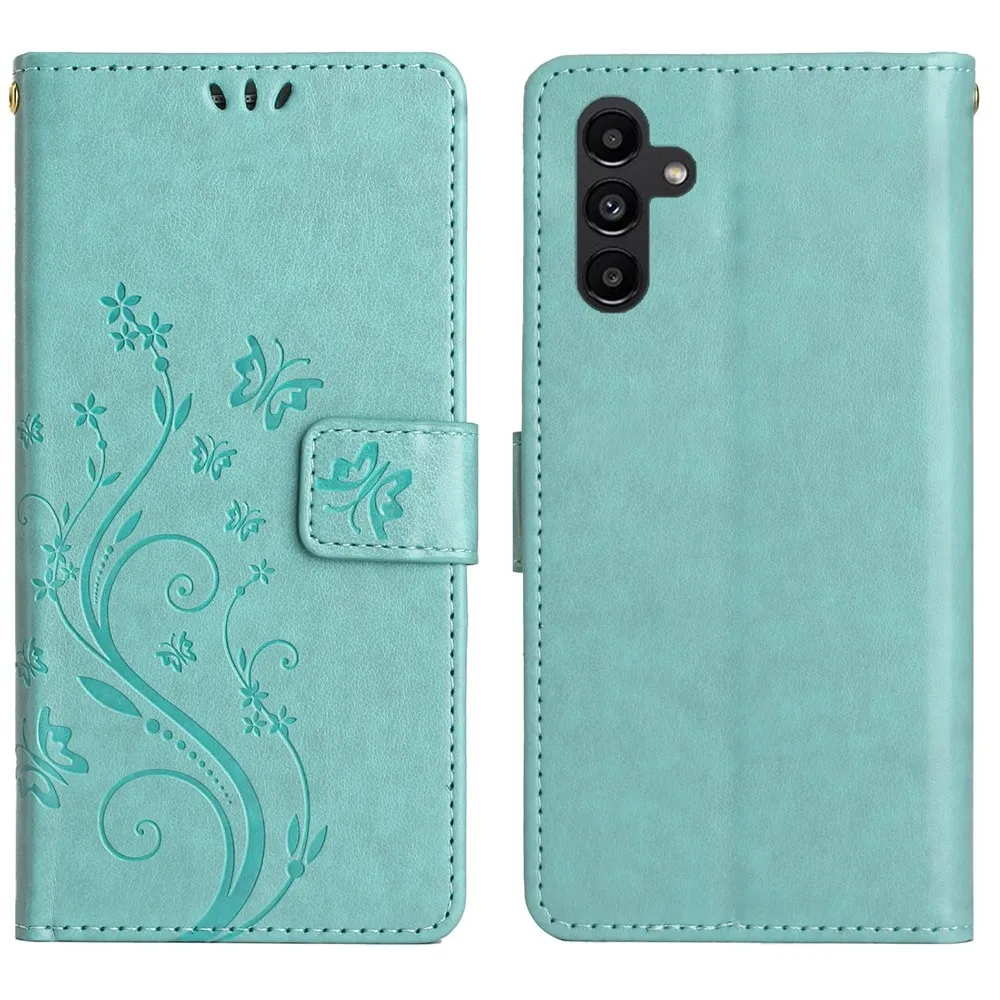 Modrozelené peňaženkové puzdro Flowers na Samsung Galaxy S26/S26 Pro