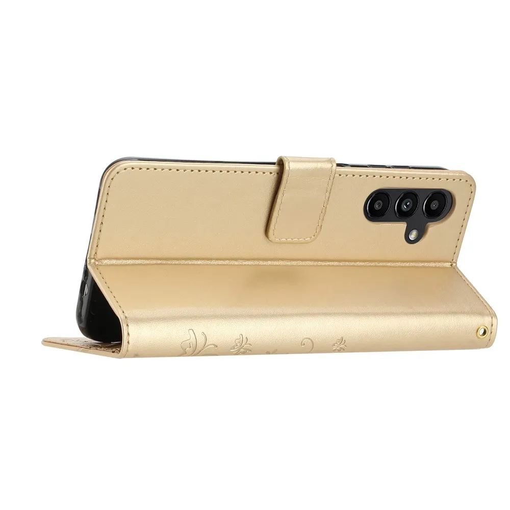 Zlaté peňaženkové puzdro Flowers na Samsung Galaxy S26/S26 Pro