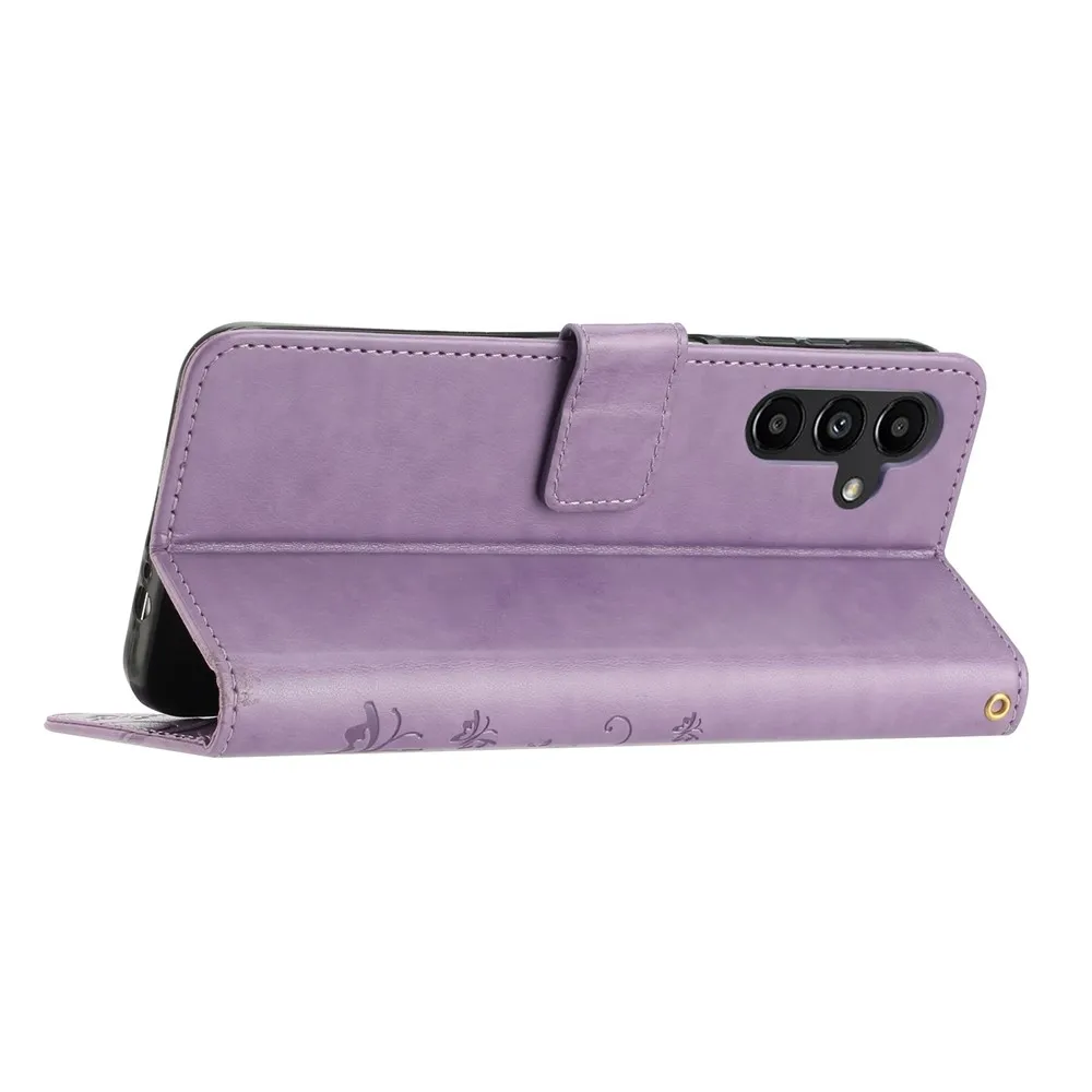 Svetlofialové peňaženkové puzdro Flowers na Samsung Galaxy S26+