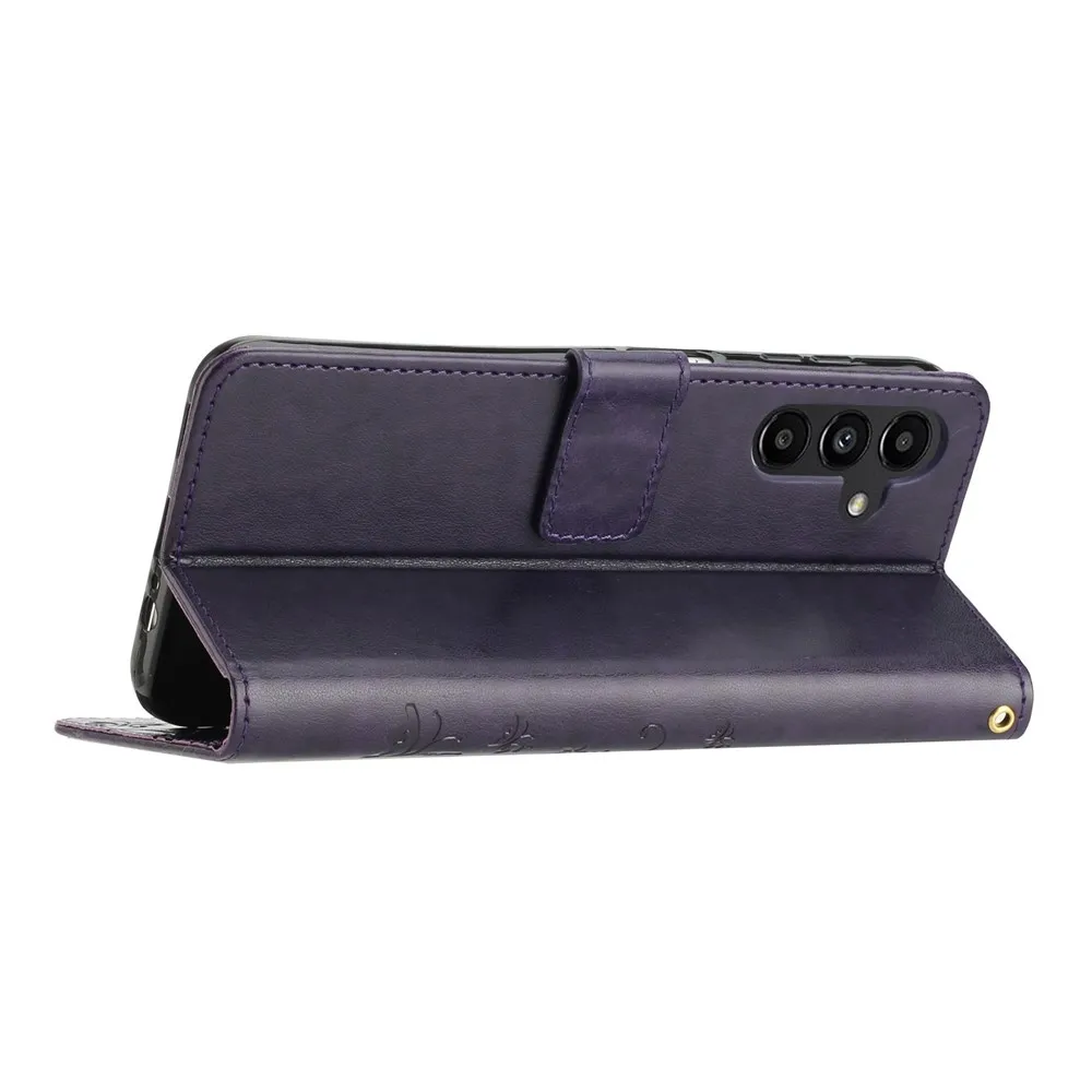Tmavofialové peňaženkové puzdro Flowers na Samsung Galaxy S26+