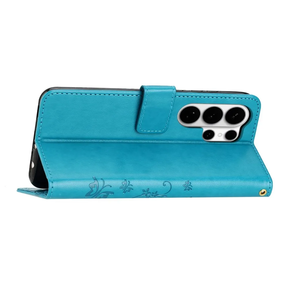 Modré peňaženkové puzdro Flowers na Samsung Galaxy S26 Ultra