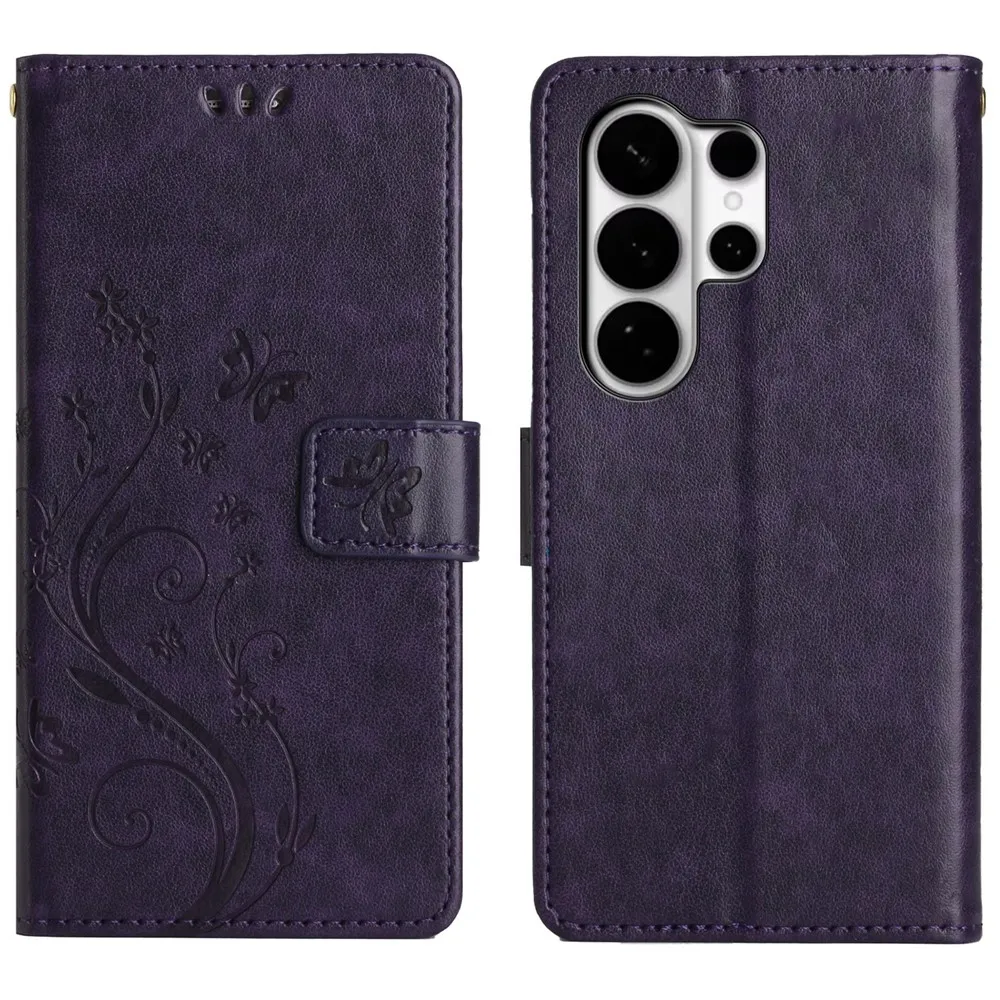 Tmavofialové peňaženkové puzdro Flowers na Samsung Galaxy S26 Ultra