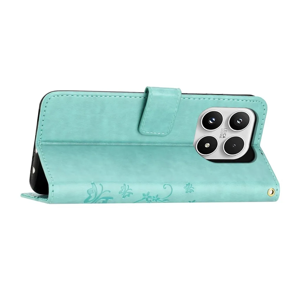Modrozelené peňaženkové puzdro Flowers na mobil Xiaomi 17