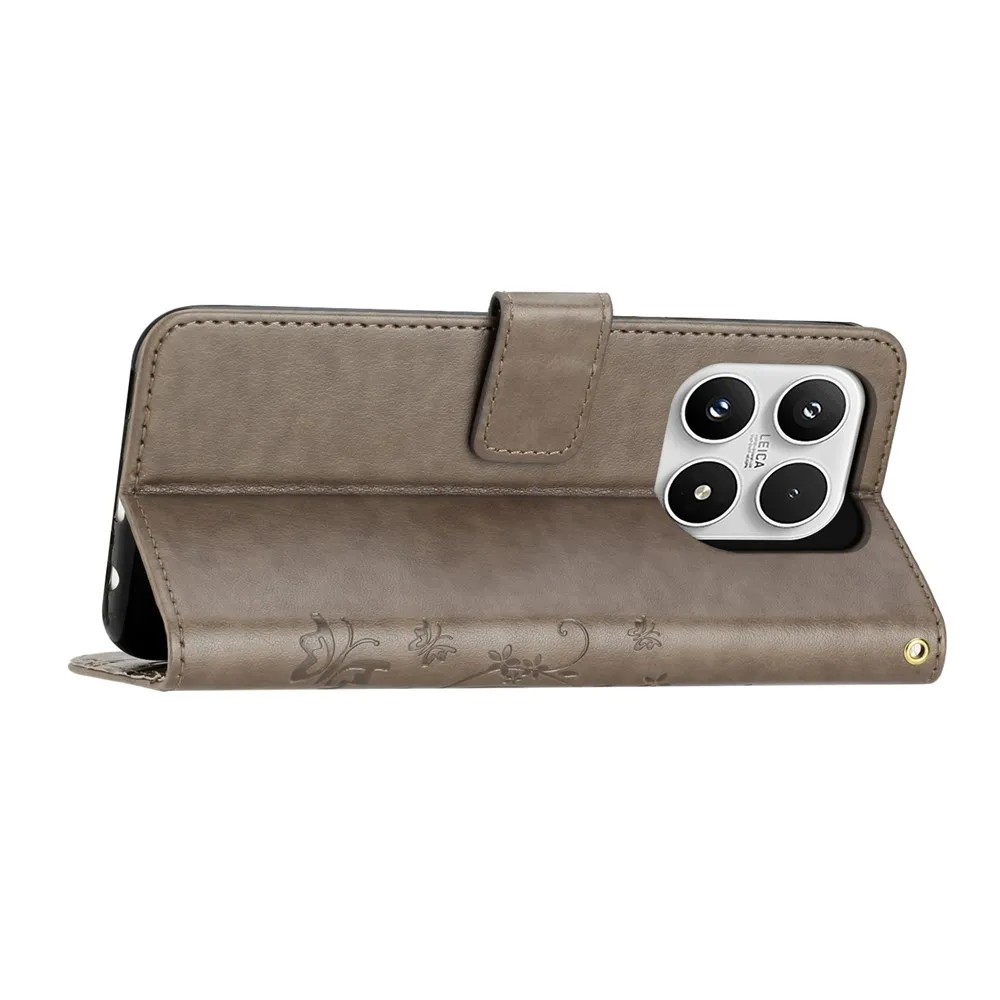 Šedé peňaženkové puzdro Flowers na mobil Xiaomi 17