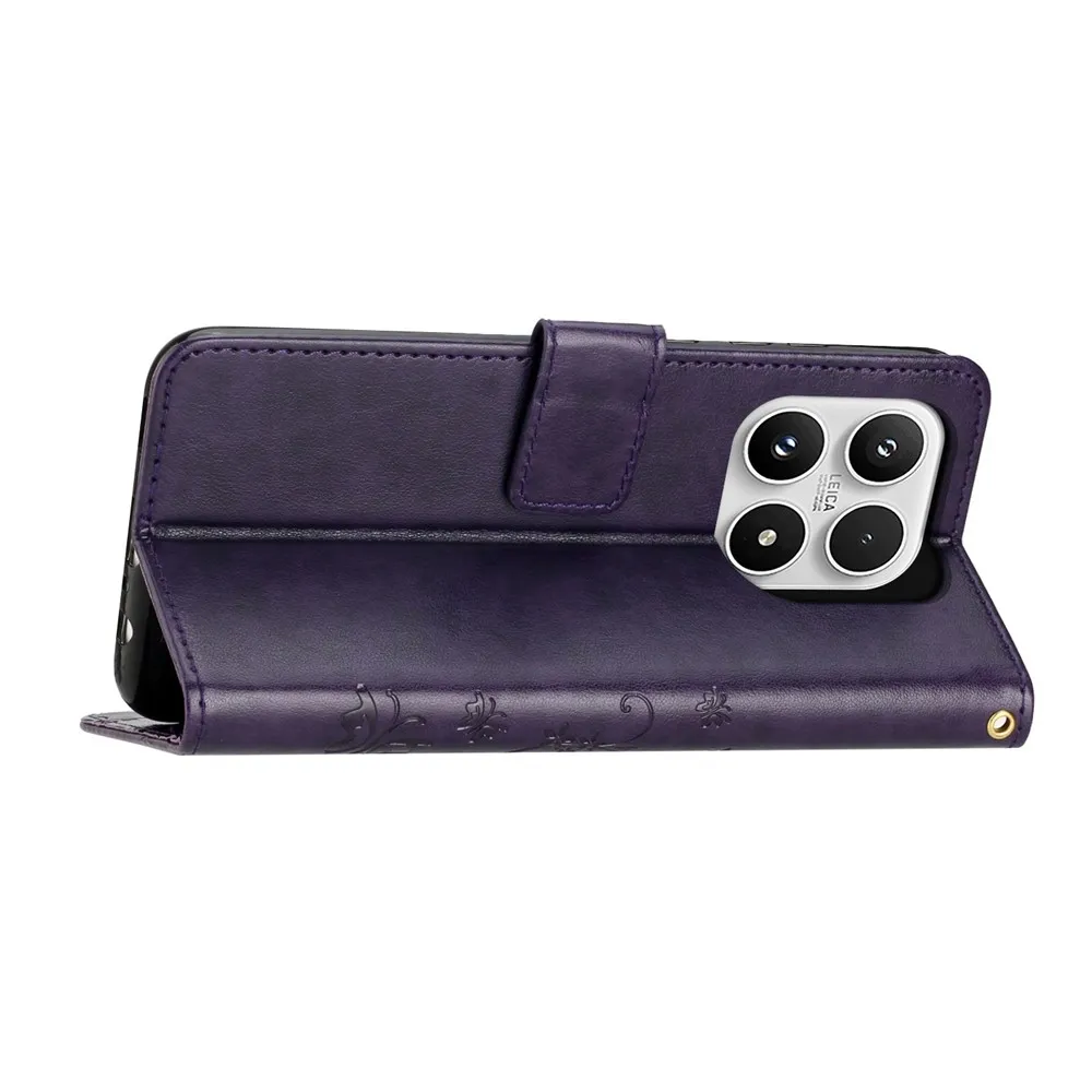 Tmavofialové peňaženkové puzdro Flowers na mobil Xiaomi 17