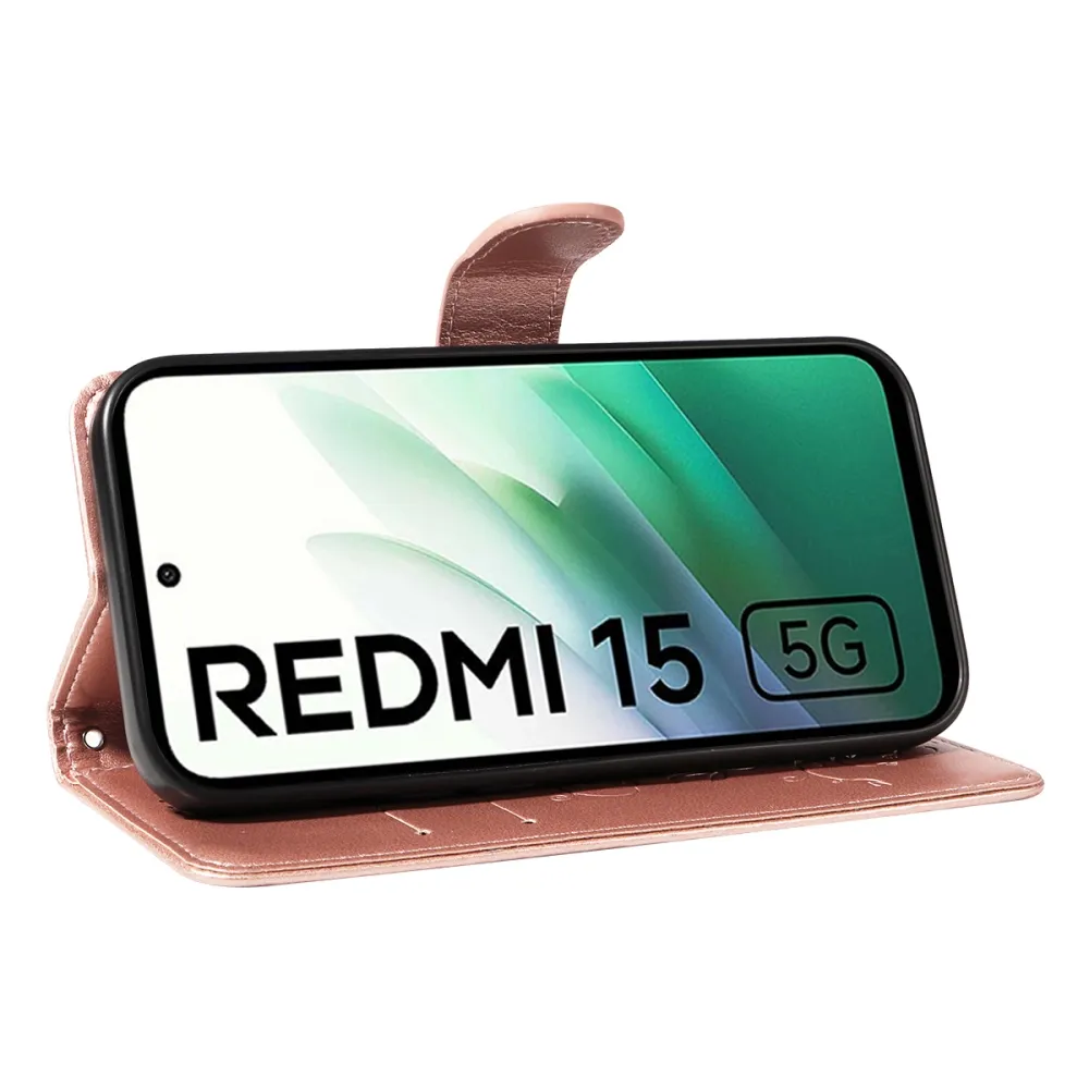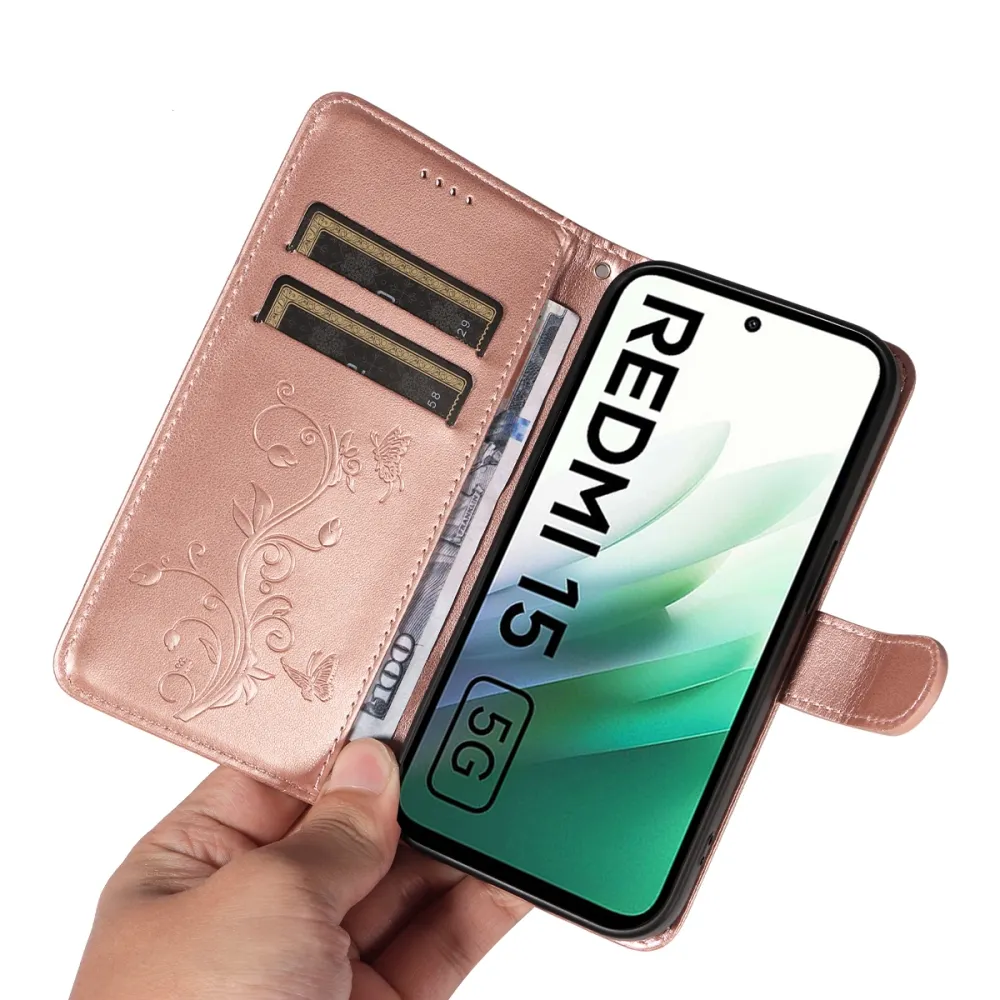 Ružovozlaté peňaženkové puzdro Flowers na mobil Xiaomi Redmi 15 5G (169mm)