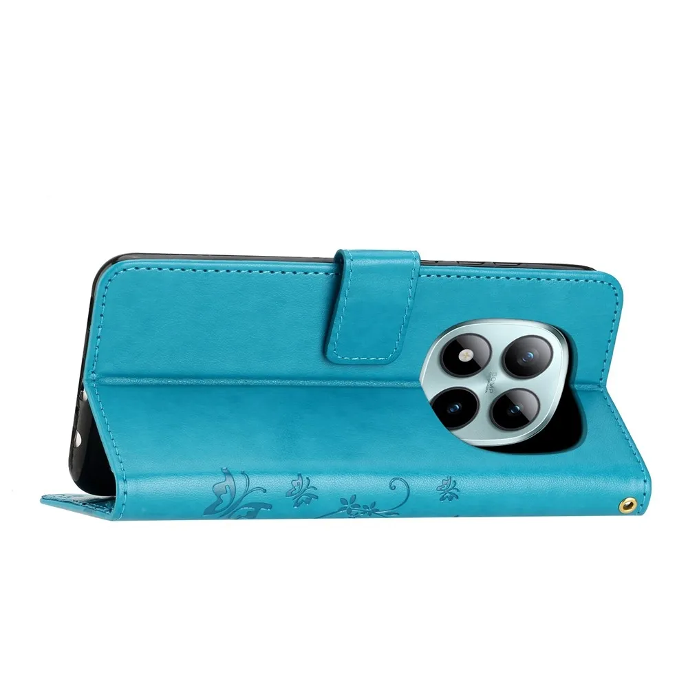 Modré peňaženkové púzdro Flowers na mobil Xiaomi Redmi Note 15 Pro+ 5G